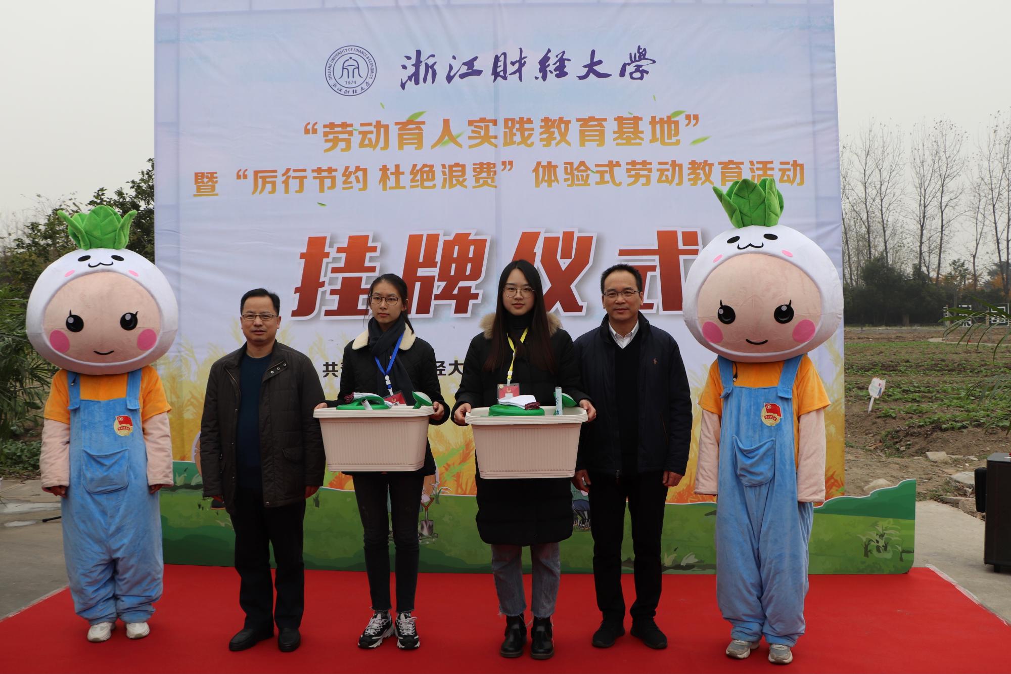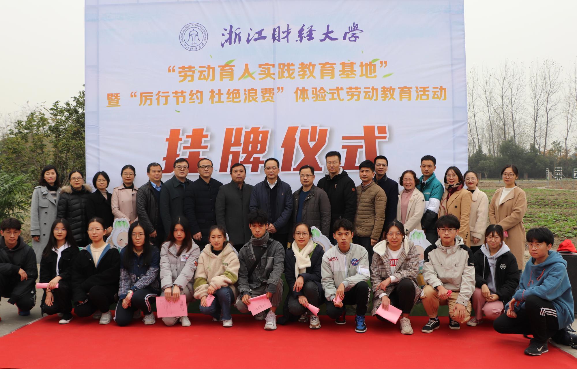 本网讯 12月10日,“劳动育人实践教育基地”挂牌仪式暨“厉行节约 杜绝浪费”体验式劳动教育活动在下沙校区举行。校党委副书记余建森,党委委员、宣传部部长楼胆群出席仪式。学生处、校团委、后勤服务中心负责人,各学院分管学生工作副书记及师生代表等参加仪式。