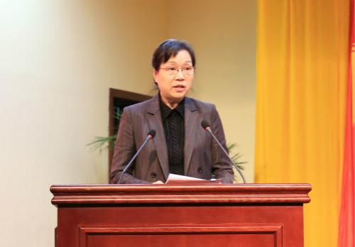童丽君首先代表省妇联向大会的召开表示祝贺,向全校女教职工、女大学生们致以诚挚的问候。她充分肯定了学校党委对妇联组建工作的关心和重视,并对学校妇联工作提出四点希望和要求:一是深入学习贯彻习近平新时代中国特色社会主义思想,自觉担起思想政治引领的重要职责。二是把握新机遇,团结带领全校女教职工和女大学生建功新时代。三是发挥女性独特作用,努力践行社会主义核心价值观。四是坚持党建带妇建,进一步增强妇联组织的政治性、先进性和群众性。
