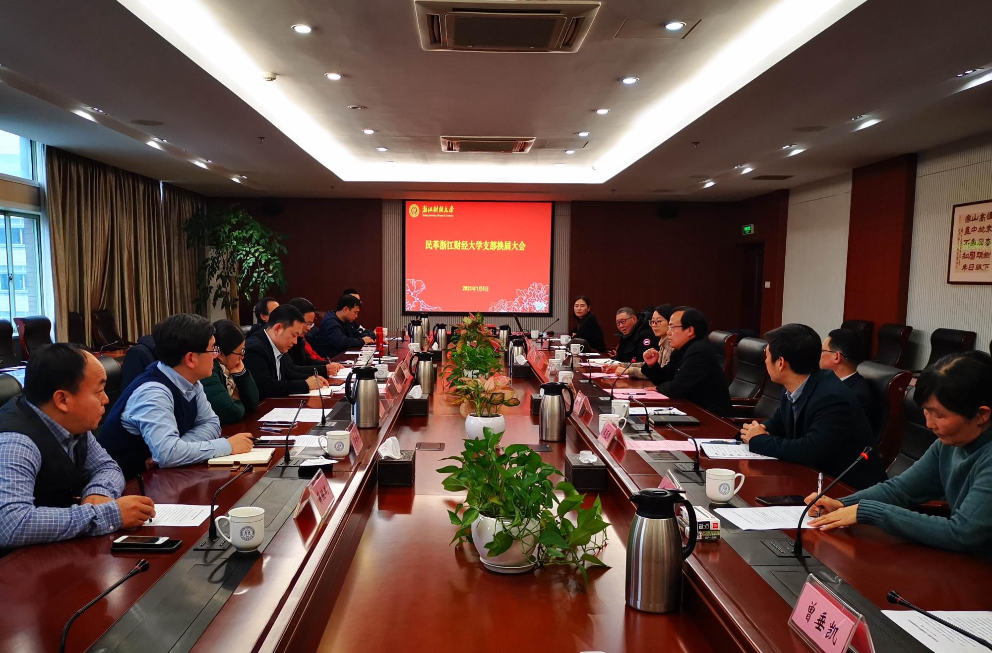 本网讯 1月5日,民革买球体育官方网站支部换届大会在下沙校区举行。校党委副书记黄建新,民革省委会秘书长亓述伟、调研部副部长陈乾俊等出席会议。