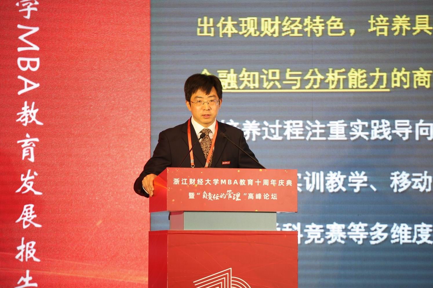 MBA学院院长王建明以“专注培养懂财经的管理者,善管理的财经人”为题向与会人员作了MBA教育发展报告。