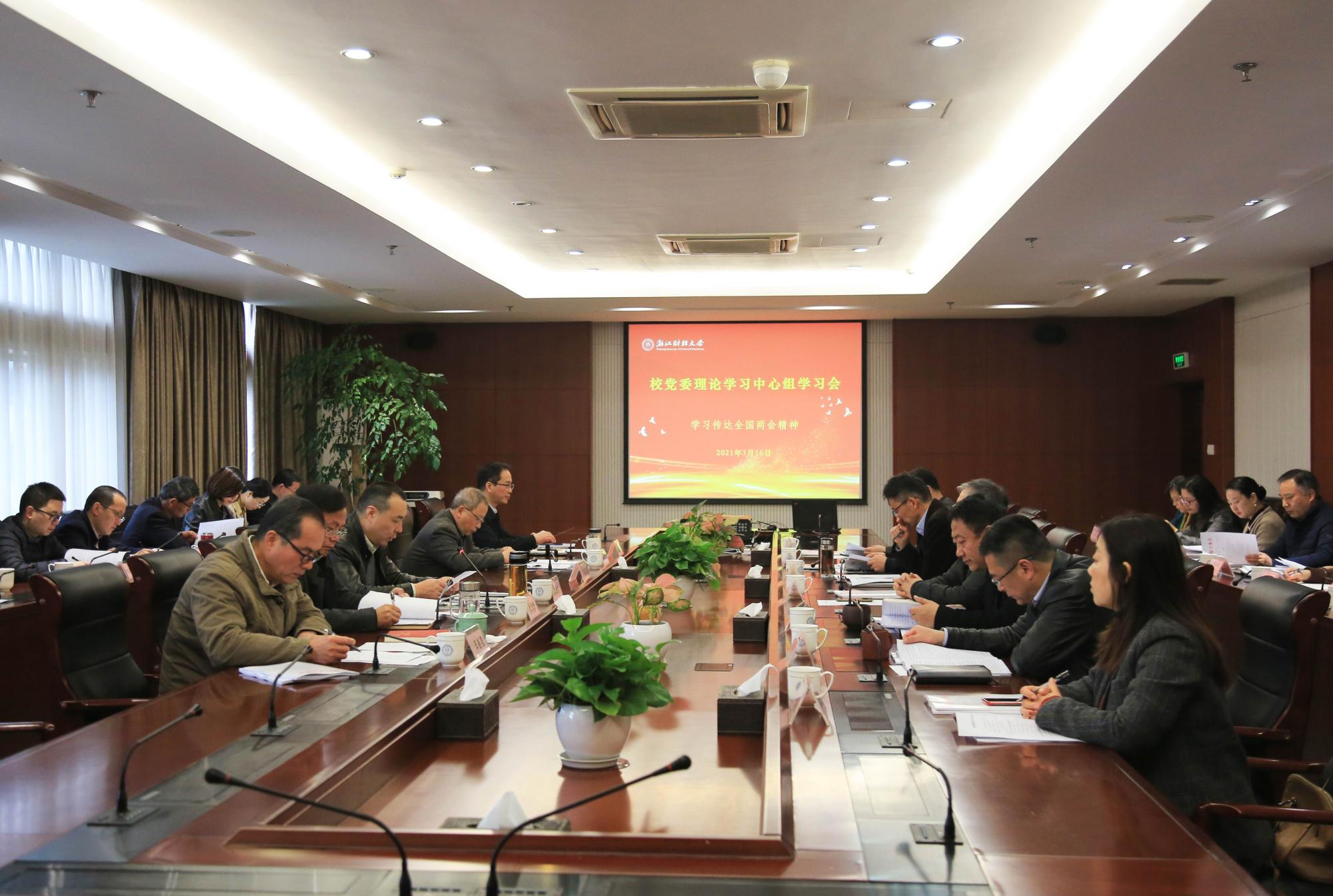 本网讯 3月16日上午,学校召开党委理论学习中心组学习会,专题学习习近平总书记在全国两会期间的重要讲话精神,学习十三届全国人大四次会议和全国政协十三届四次会议精神,传达学习全省领导干部会议精神。校党委书记李金昌主持会议,党委理论中心组全体成员参加学习。