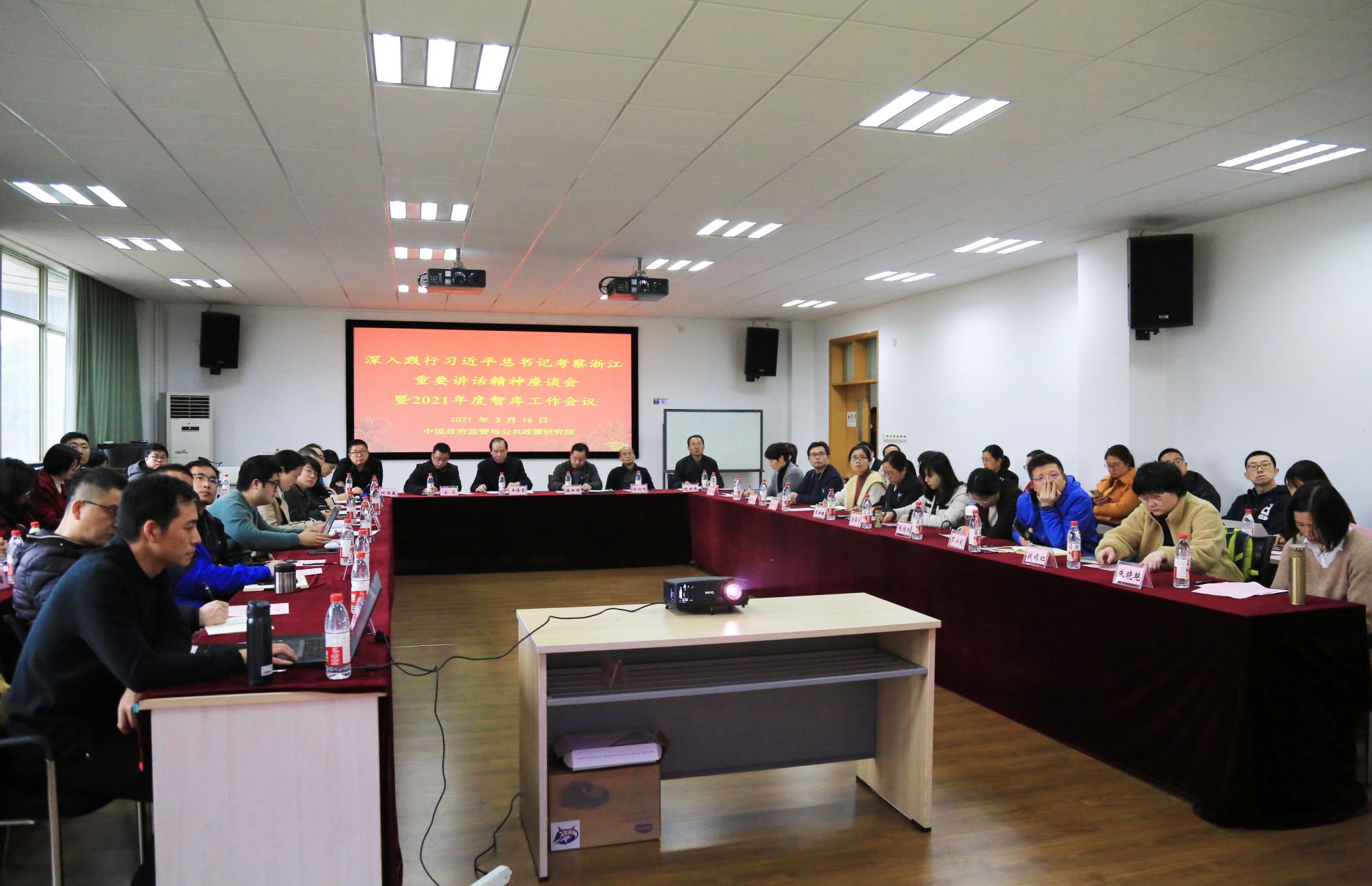 本网讯 3月16日,学校召开深入践行习近平总书记考察浙江重要讲话精神座谈会暨2021年度智库工作会议。省特级专家、中国政府管制研究院院长王俊豪,校党委委员、宣传部部长楼胆群和有关学院、研究院、职能部门负责人等参加。