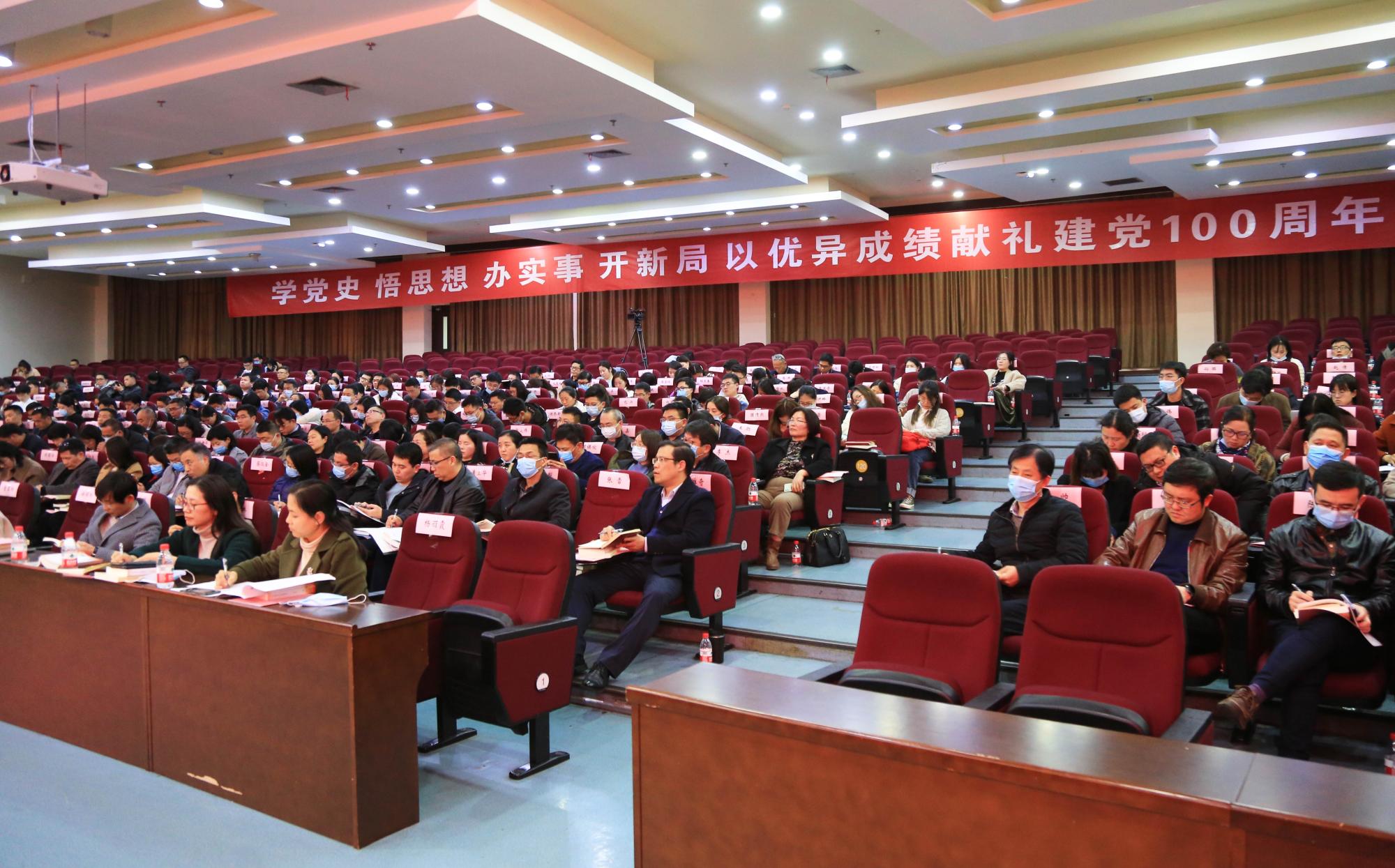 本网讯 3月18日下午,学校召开党史学习教育动员部署会,对全校党史学习教育进行动员部署。校党委书记、党史学习教育领导小组组长李金昌讲话,校党委副书记、校长钟晓敏主持会议。校领导班子全体成员、中层干部、各党支部书记、专兼职组织员420余人参加会议。