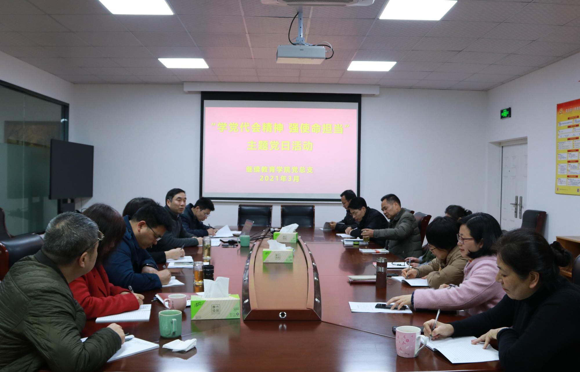 继教学院党总支开展“学党代会精神,强使命担当”主题党日活动,专题学习贯彻学校第二次党代会精神。大家对学校第二次党代会精神进行了再学习再认识再深化,一致认为第二次党代会是学校面向新时代、站在新起点、谋划新发展、开启新篇章的一次重要会议,党代会描绘的新时期改革发展美好蓝图,为推动学校在新时期实现又好又快发展指明了前进方向、提供了基本遵循。