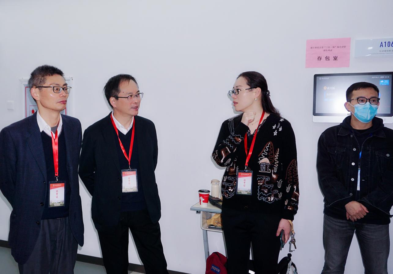 本网讯 4月10日至11日,学校2021年“三位一体”招生综合素质测试在下沙校区举行。校长钟晓敏,校党委副书记黄建新、余建森,校纪委书记孙旭东来到测试现场检查指导工作,看望考生、考官和考务人员。