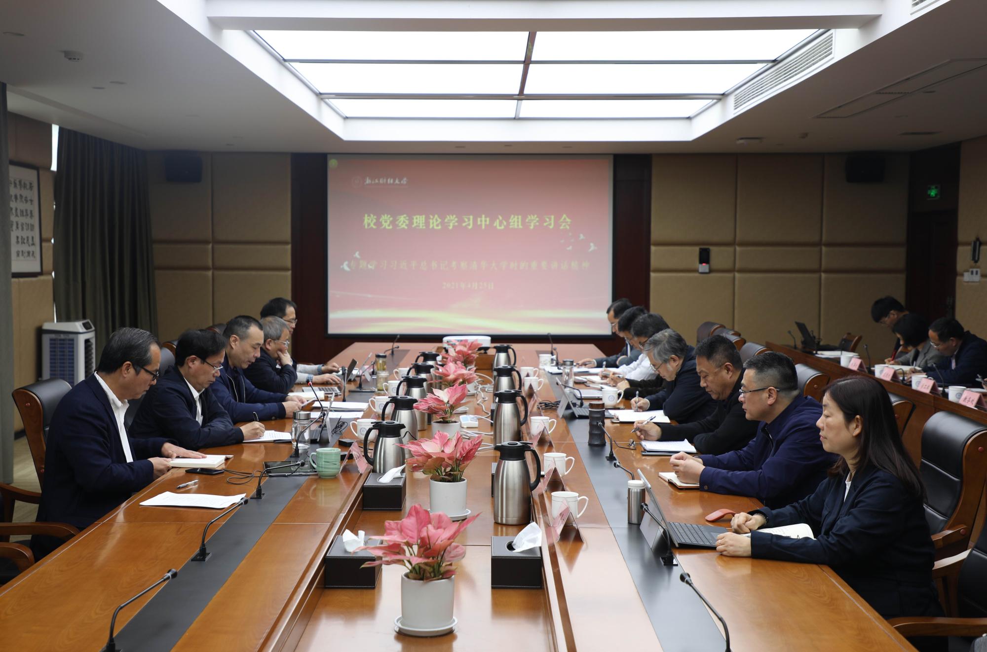 本网讯 4月25日上午,校党委理论学习中心组举行专题学习会,学习习近平总书记在清华大学考察时的重要讲话精神。校党委书记李金昌主持学习会,中心组全体成员参加学习。