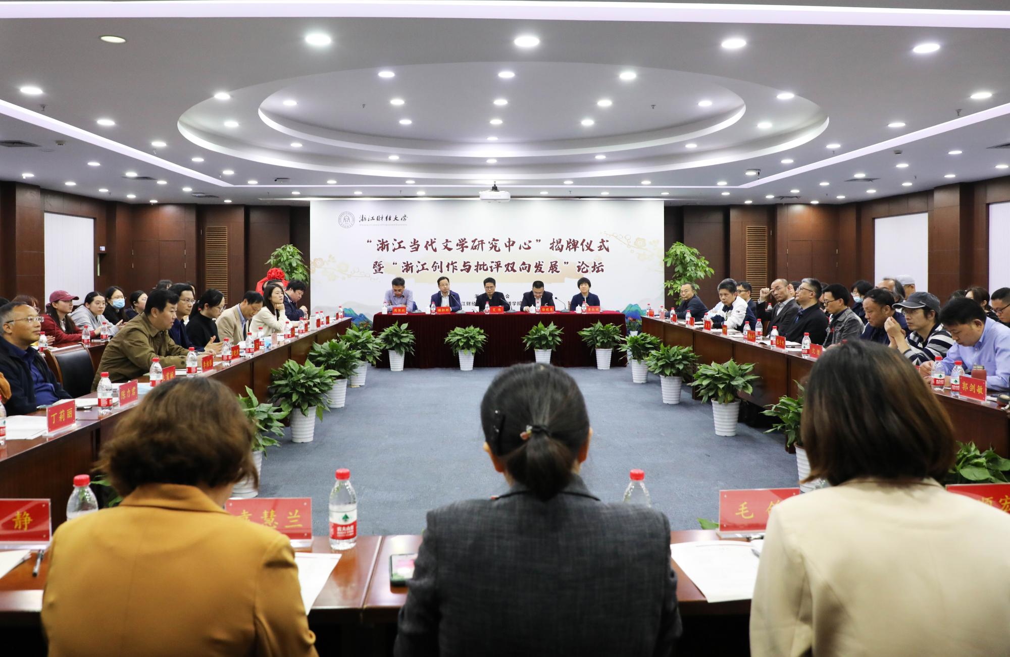 人文与传播学院院长周保欣主持揭牌仪式。围绕“浙江创作与批评双向发展”这一主题,与会学者和作家从历史传统、创作经验、学科体系、话语构建等宏阔视角,畅谈了文学创作与批评如何互动、互生、互长双向发展,表达了对于文学与时代关系的深入思考,为浙江文艺创作与批评的持续互动发展寻找新方向。