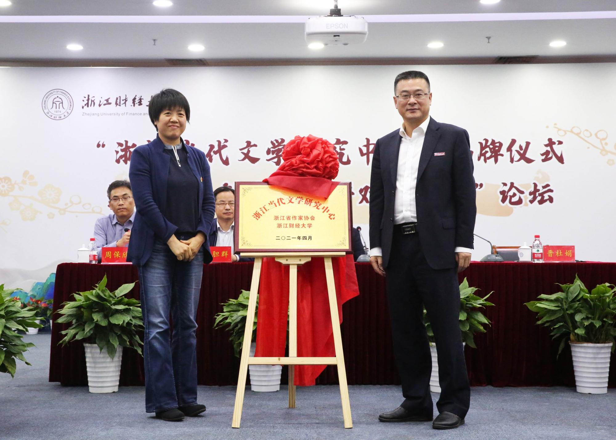 浙江省作家协会与买球体育官方网站合作共建“浙江当代文学研究中心”,徐晓东和晋杜鹃为研究中心揭牌。