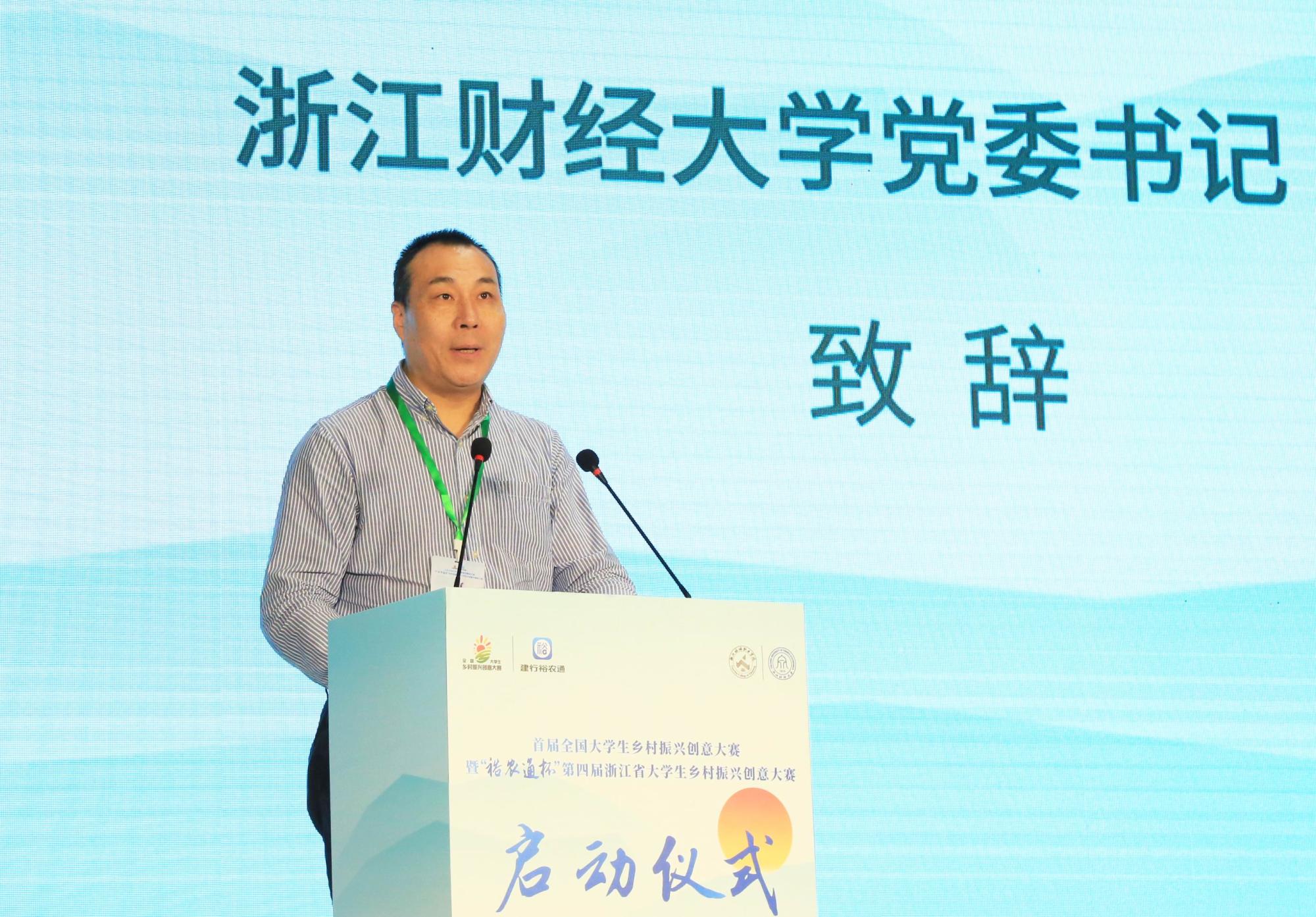 刁玉泉代表主办单位致辞。他表示,今年大赛首次升格为全国大学生乡村振兴创意大赛,再次印证了赛事的竞争力、影响力和美誉度。希望青年学生用自己的智慧、专业,设计出有思想、有特色、有时代特征的精品,在新时代的舞台上创造更多精彩,为打造浙江乡村新风貌贡献青春力量。