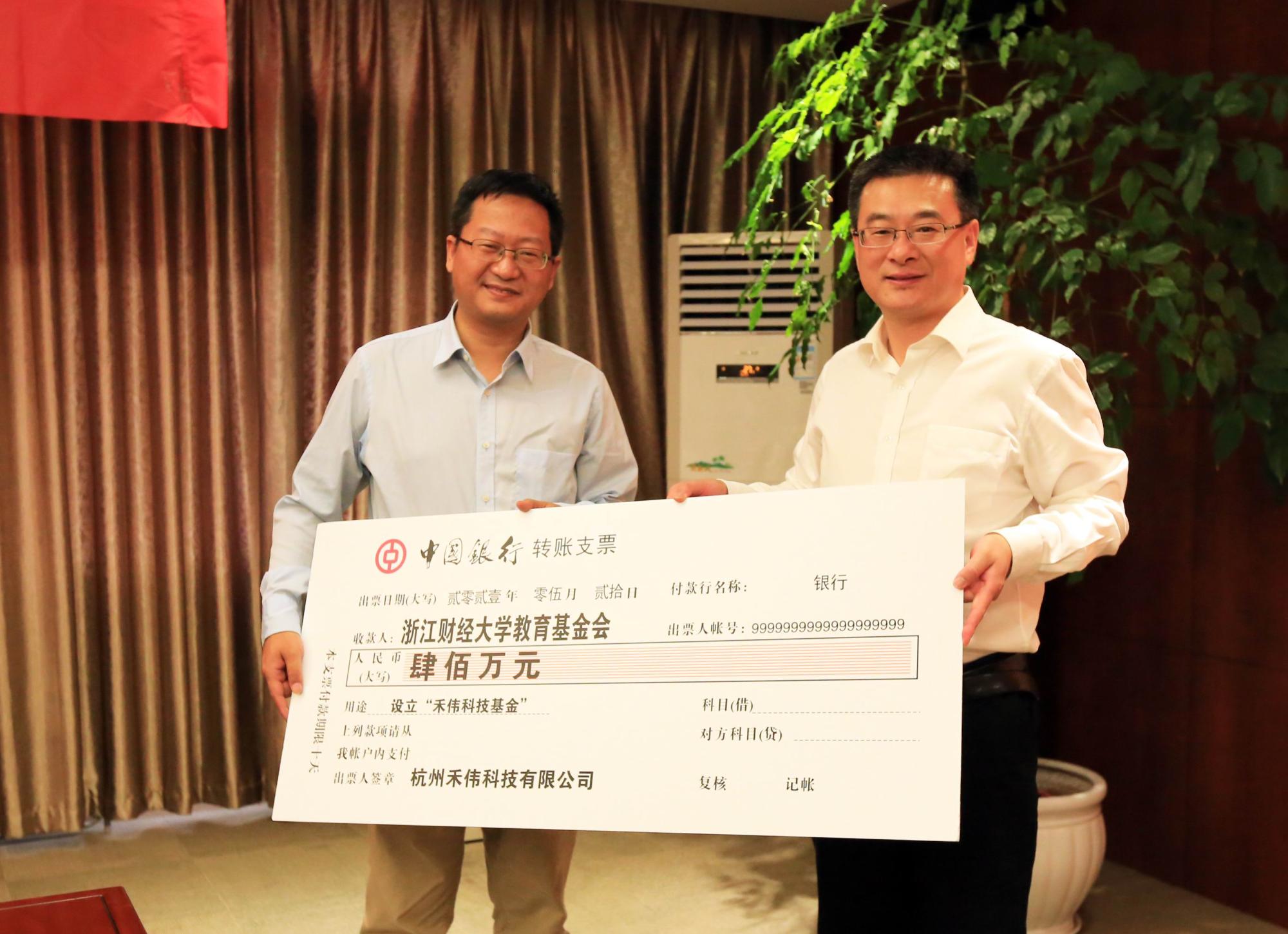 本网讯 5月20日,杭州禾伟科技教育基金捐赠签约仪式在我校下沙校区举行。校友总会副会长、副校长王奎泉,校友总会副会长兼秘书长、副校长徐晓东,杭州禾伟科技有限公司董事长王坚、总经理蒋强等出席签约仪式。