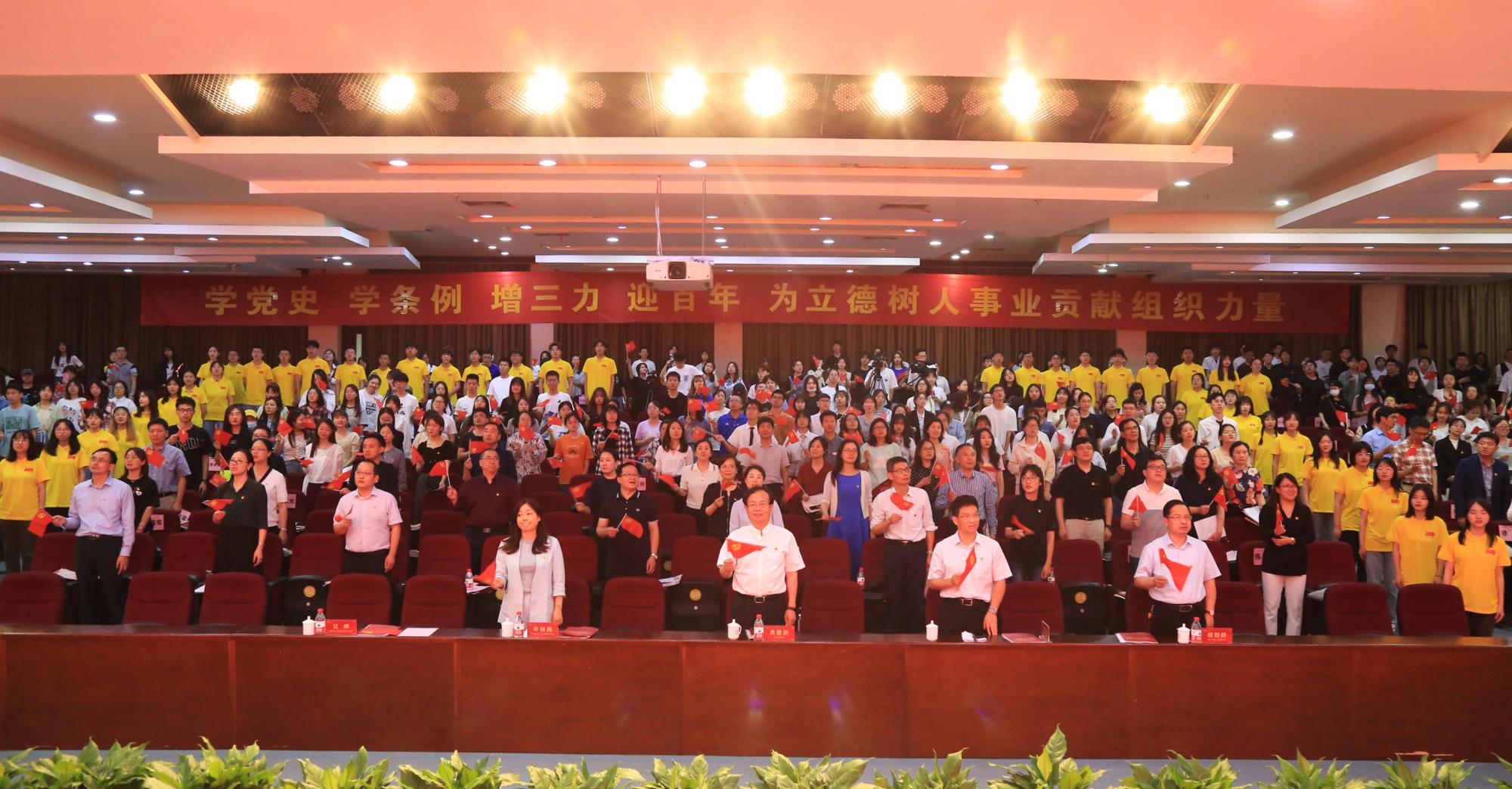 本网讯 5月27日,学校举行第八轮支部建设创新评比暨第二批“双带头人”教师党支部书记示范工作室授牌仪式。校领导黄建新、董进才、申屠莉和楼胆群以及党群部门负责人,各二级党组织书记、副书记,全体组织员、党支部书记,师生党员代表等600余人参加大会。