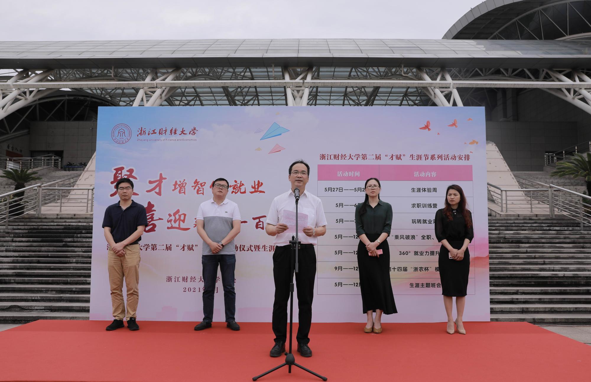 本网讯 5月27日,学校第二届“才赋”生涯节开幕式暨生涯体验周启动仪式在下沙校区举行。校党委副书记余建森出席启动仪式并致辞。相关职能部门负责人,各学院分管学生工作副书记等参加启动仪式。