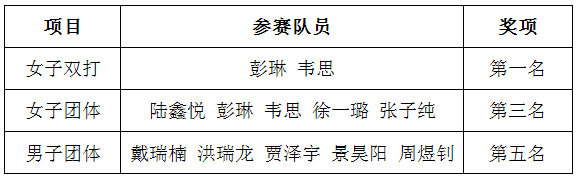 浙江省第十二届大学生网球锦标赛学校获奖名单