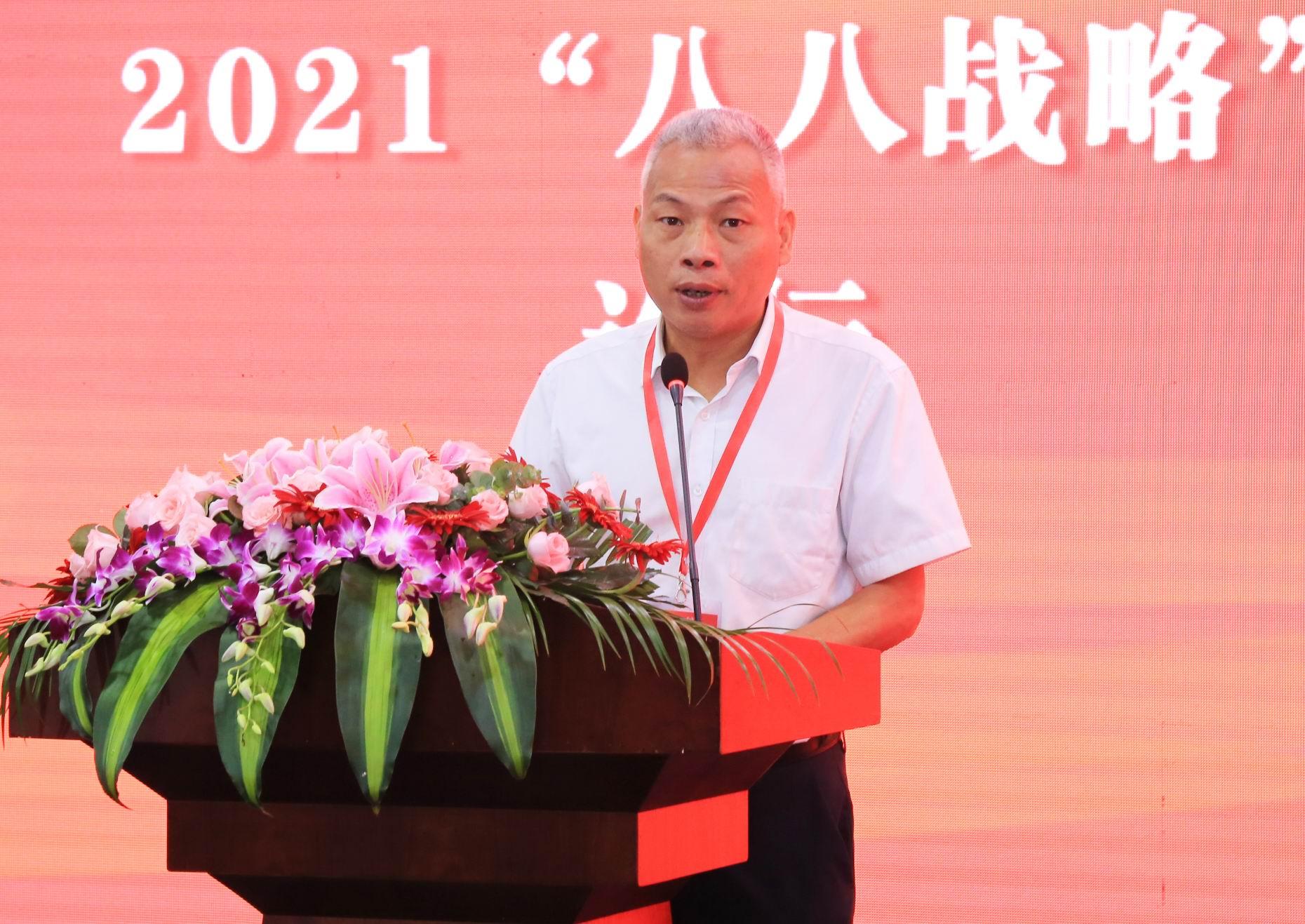 本网讯 6月19日,2021“八八战略”论坛在我校下沙校区召开。省高级人民法院副院长徐建新,浙江农林大学党委书记、生态文明研究院院长沈满洪,嘉兴学院党委书记、中国共同富裕研究院院长卢新波,中国社科院社会学所副所长王春光,省委党校副校长陈立旭,省委政研室原副主任郭占恒,省政府咨询委员会学术委员会副主任、省发展规划研究院原院长刘亭,杭州市支援合作局区域合作处三级调研员余志刚,《浙江日报》全媒体评论理论部主任助理吴晔,浙江省“八八战略”研究院十大研究团队以及部分师生代表100余人参加论坛。校党委书记、浙江省“八八战略”研究院院长李金昌和省社科联副主席陈先春致辞。校党委委员、组织部、统战部部长董进才主持论坛开幕式。校党委委员、宣传部部长,浙江省“八八战略”研究院秘书长楼胆群主持主旨报告和专家发言环节。