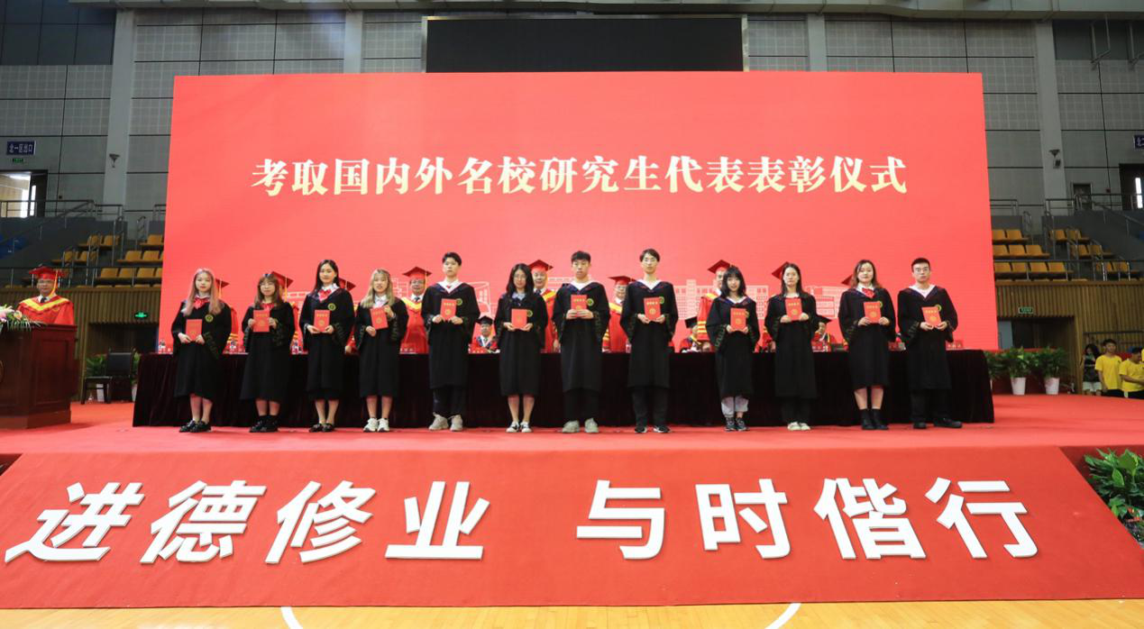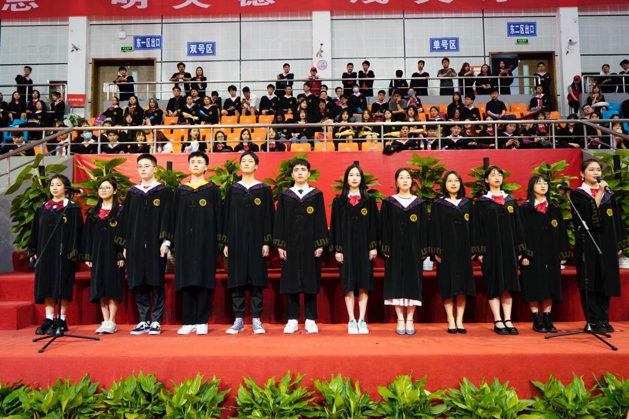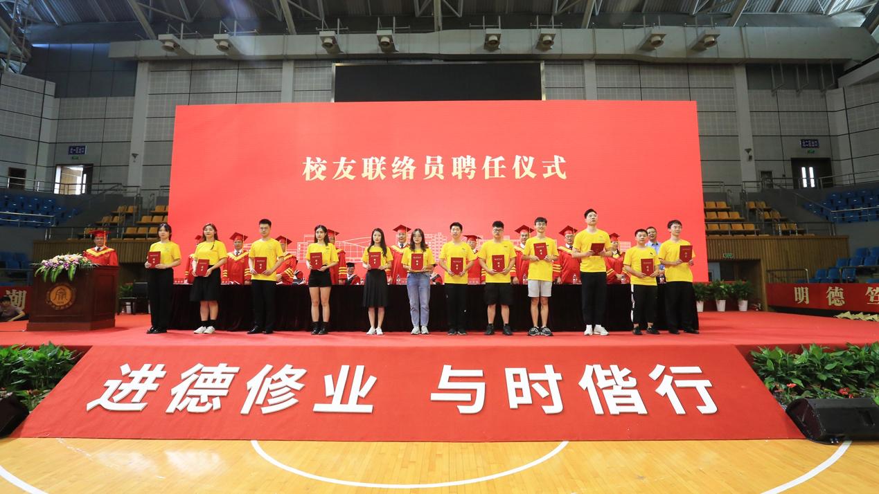 典礼现场还表彰了获得省级优秀毕业生荣誉称号学生及本科生考取国内外名校研究生代表,12名毕业生代表向母校报到,111名同学被聘为2021届校友联络员。