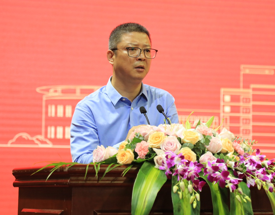 教师代表、信智学院张文宇教授以“感恩岁月静好 不甘躺平人生”为题发言。他以轻松诙谐的口吻勉励新一代的后浪们,不要躺平话感恩,而要通过行动为国家和个人的命运可持续地造血,奋斗路上要努力工作,从而带动更多的人共同富裕。