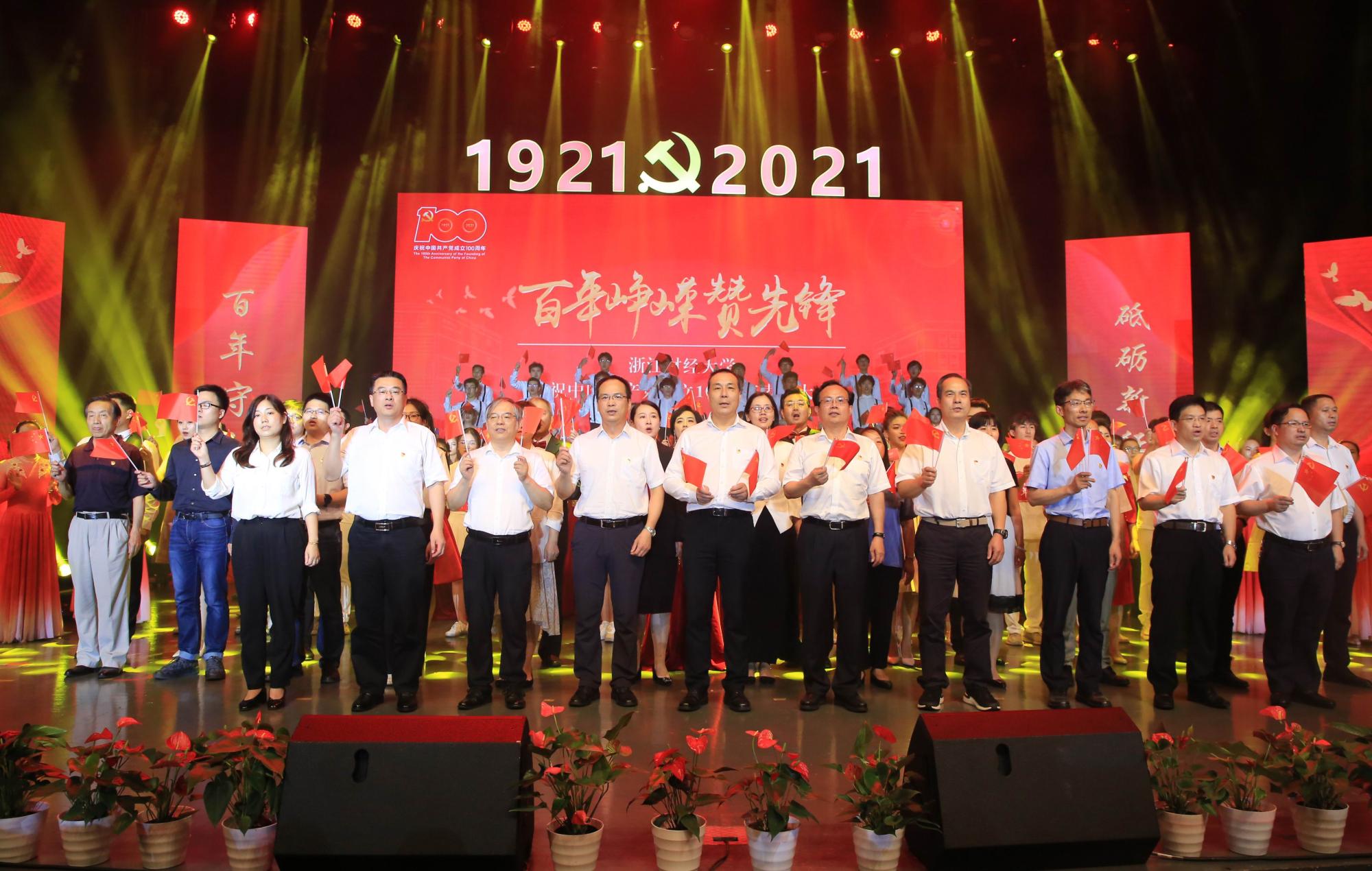 本网讯 6月28日,学校举行“百年峥嵘赞先锋”庆祝建党100周年表彰大会。李金昌、黄建新、余建森、王奎泉、孙旭东、李永友、徐晓东、董进才、申屠莉、楼胆群等校领导,老党员代表,各二级党组织负责人,全体中层干部,各党支部书记,专兼职组织员,师生党员代表共800余人参加大会。大会由校党委副书记黄建新主持。