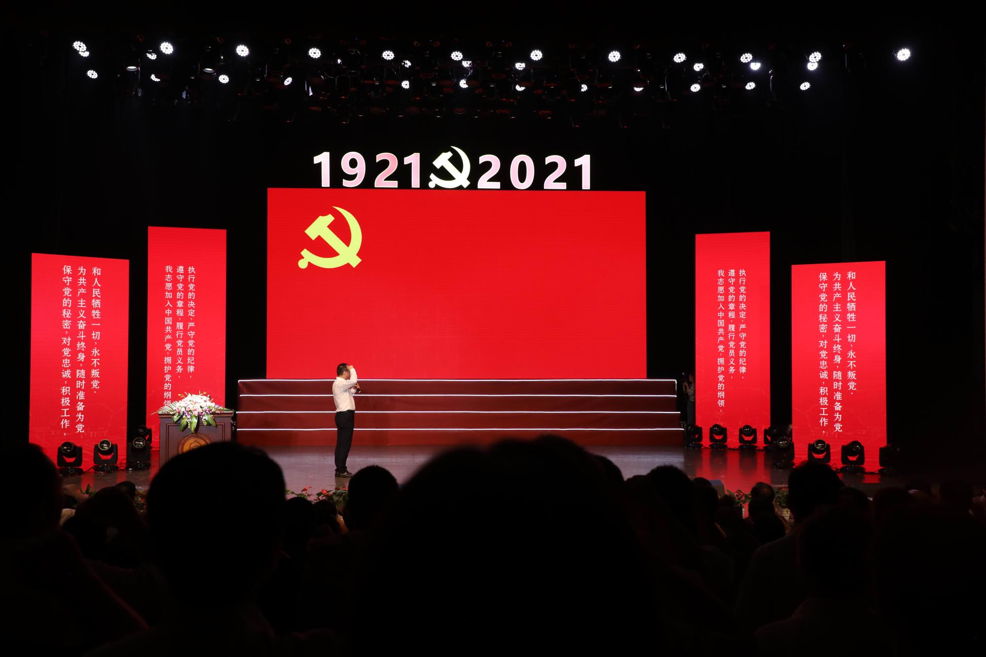 在李金昌的带领下,全场师生党员起立,集体宣誓,重温入党誓词,以最庄严的方式表达对党的热爱和祝福。