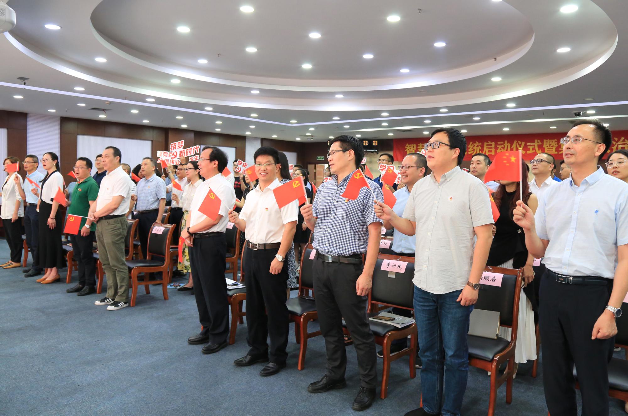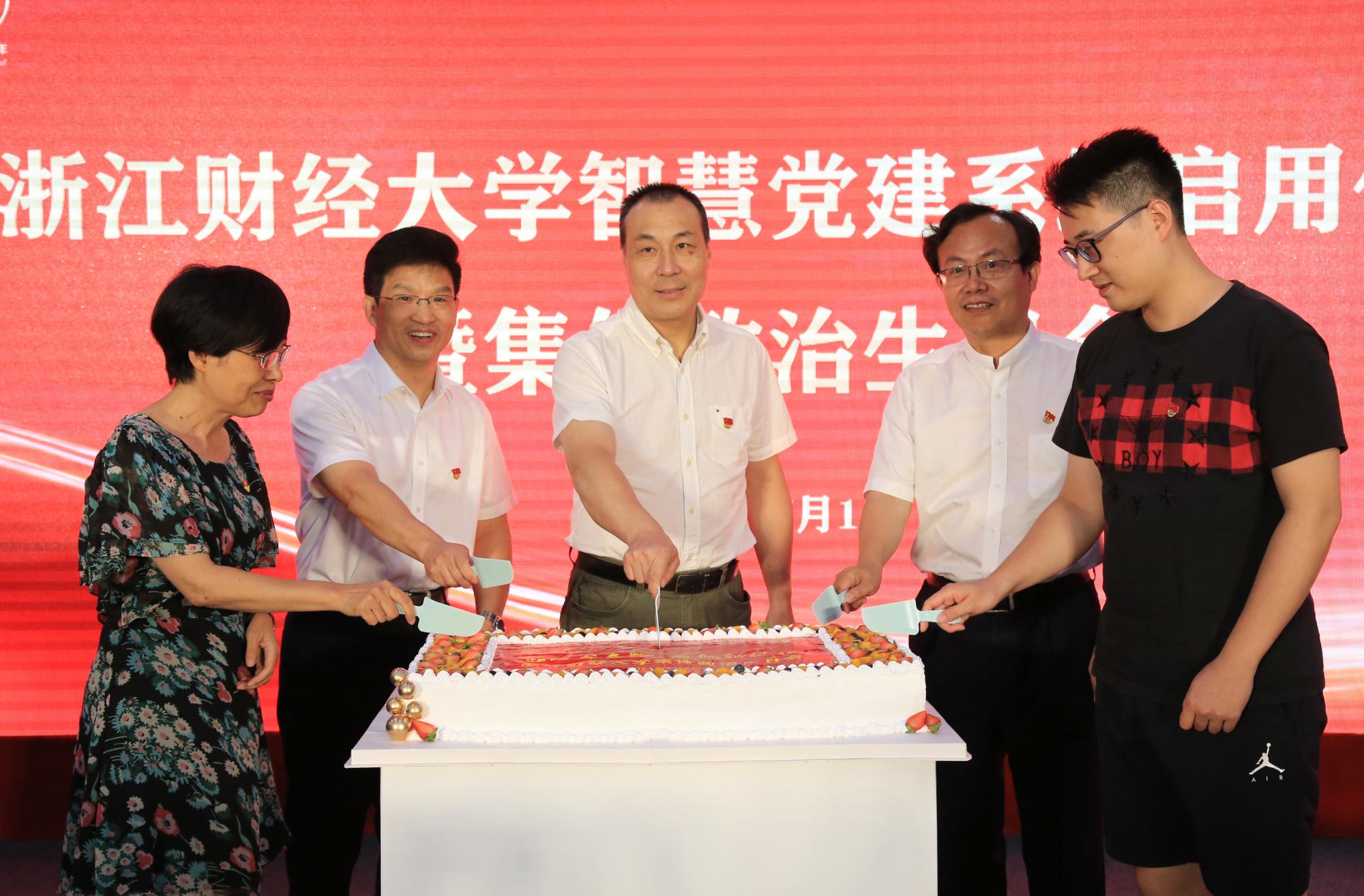 本网讯 7月1日,学校举行智慧党建系统启用仪式暨集体政治生日会。校党委书记李金昌、党委副书记黄建新及党群部门负责人、二级党组织书记、专兼职组织员、师生党员代表等参加活动。活动由校党委委员、组织部、统战部部长董进才主持。