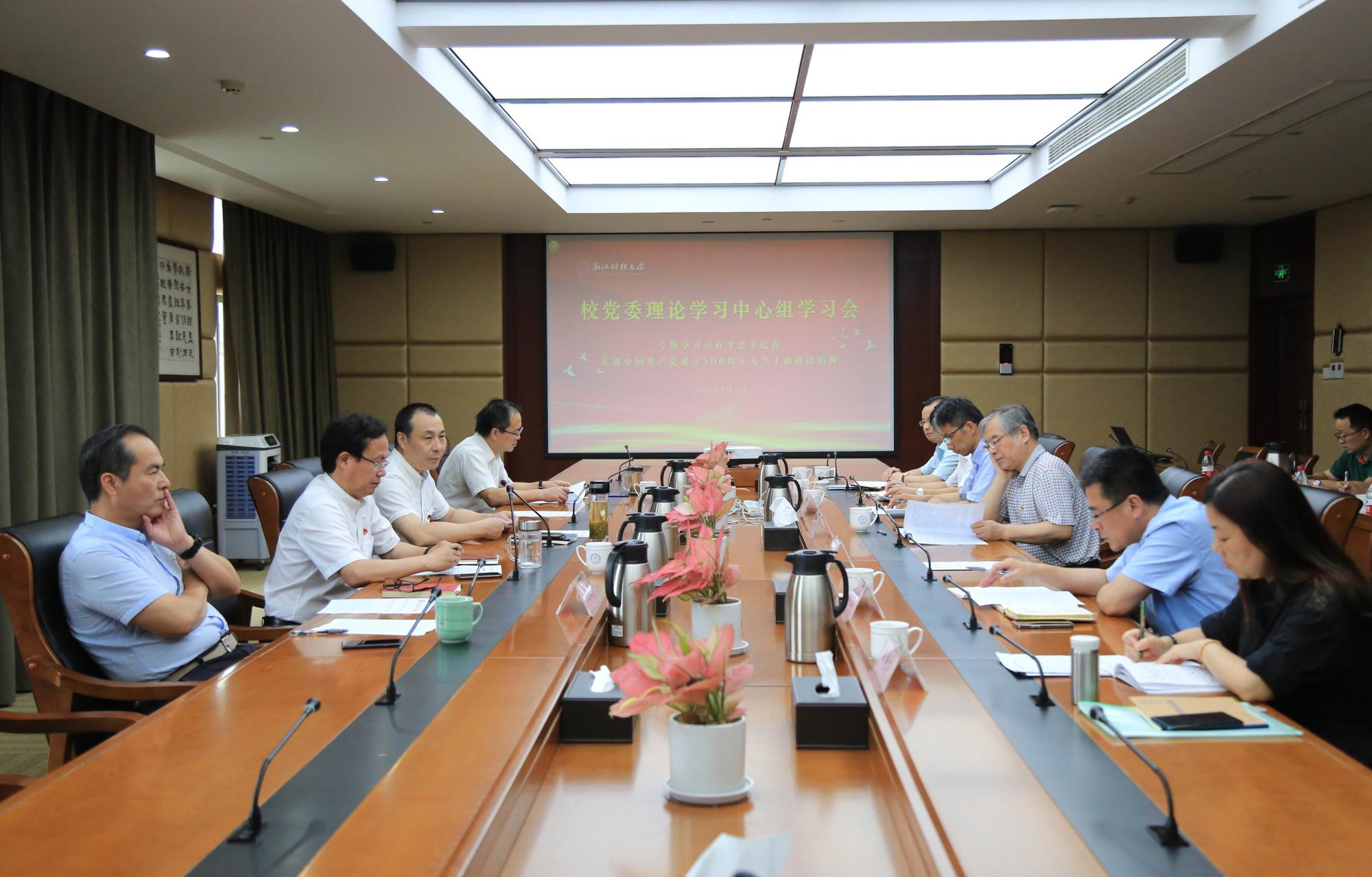 本网讯 7月1日下午,校党委理论学习中心组专题学习习近平总书记在庆祝中国共产党成立100周年大会上的重要讲话精神。校党委书记李金昌主持学习会。中心组成员黄建新、余建森、王奎泉、孙旭东、李永友、徐晓东、董进才、申屠莉、楼胆群参加,相关职能部门负责人列席。