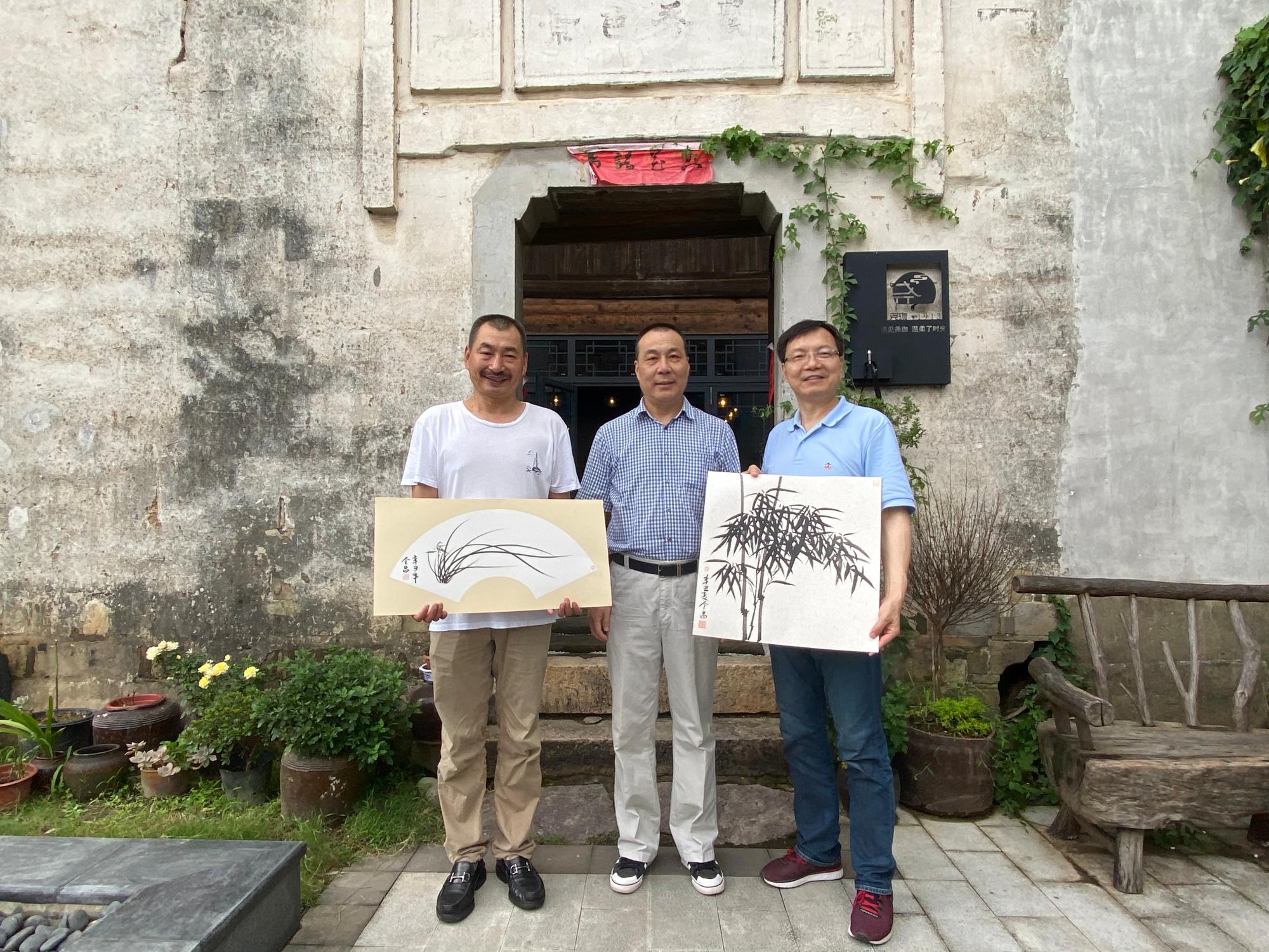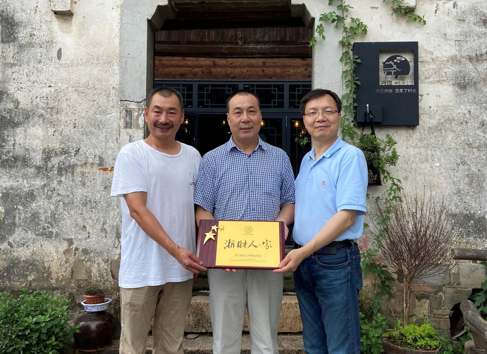 本网讯 8月4日,学校第二家“买球人•家”授牌仪式在安吉举行,校友总会会长、党委书记李金昌授牌并赠送两幅国画作品,黄力寅、陈海光、何文刚、陈乾洪等校友出席仪式。校友总会副会长兼秘书长、校党委委员、副校长徐晓东陪同。