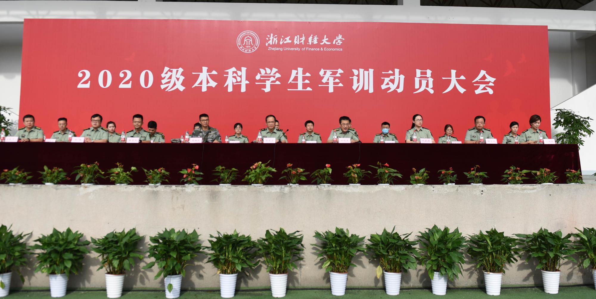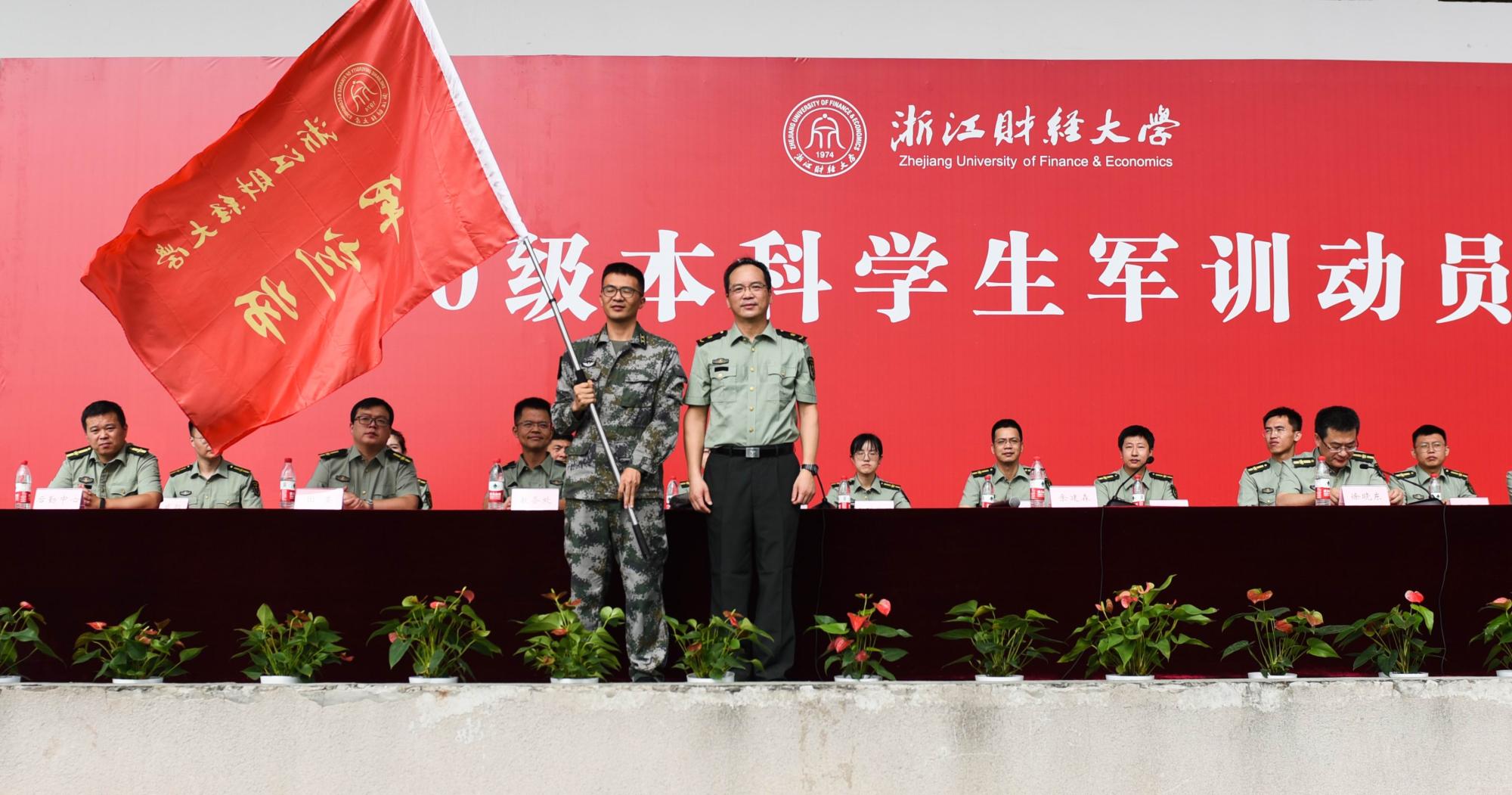 本网讯 8月25日上午,学校2020级本科生军训动员大会在下沙校区举行。军训师政委、校党委副书记余建森作军训动员讲话并授旗。副校长徐晓东主持动员大会。承训部队解放军31606部队全体承训教官,学校相关职能部门、各学院负责人以及2020级本科生等参加动员大会。