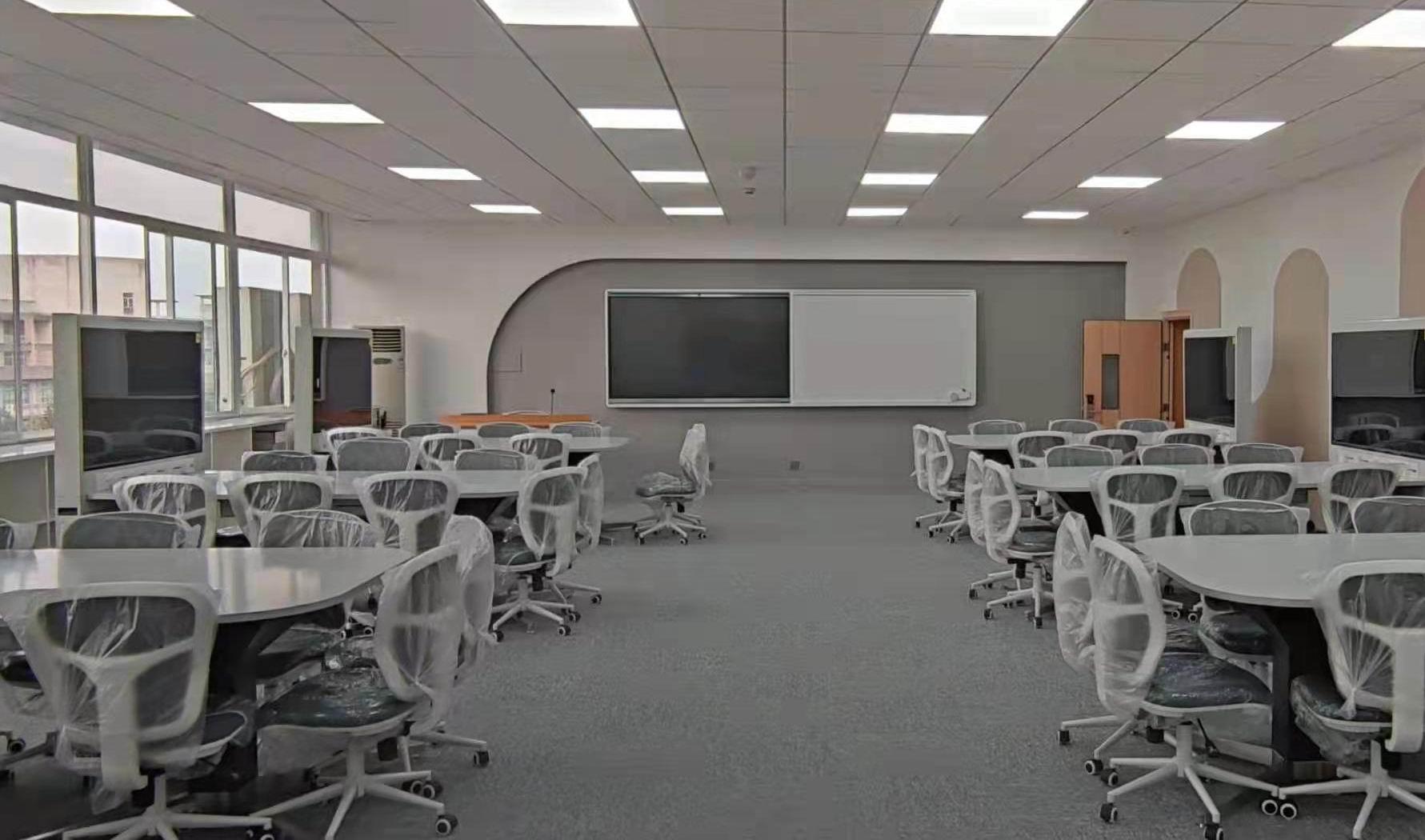 为给同学们提供一个更好的学习环境,学校更新改造了7间智慧教室、2间沙盘实验室以及4间云机房,搭建了2个公共学习空间,集中对教学楼的投影设备进行了部分更新。