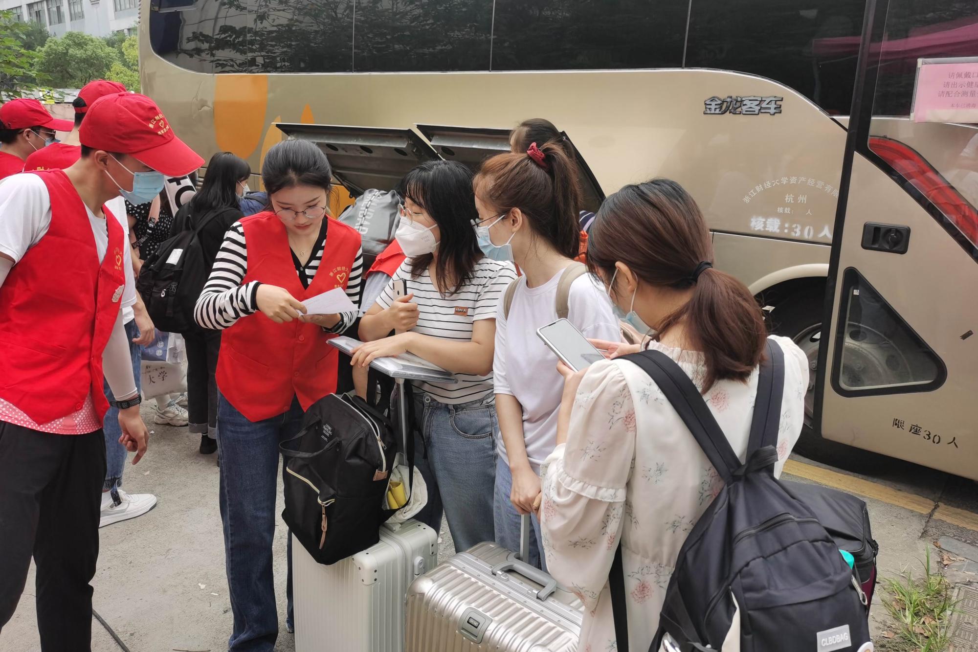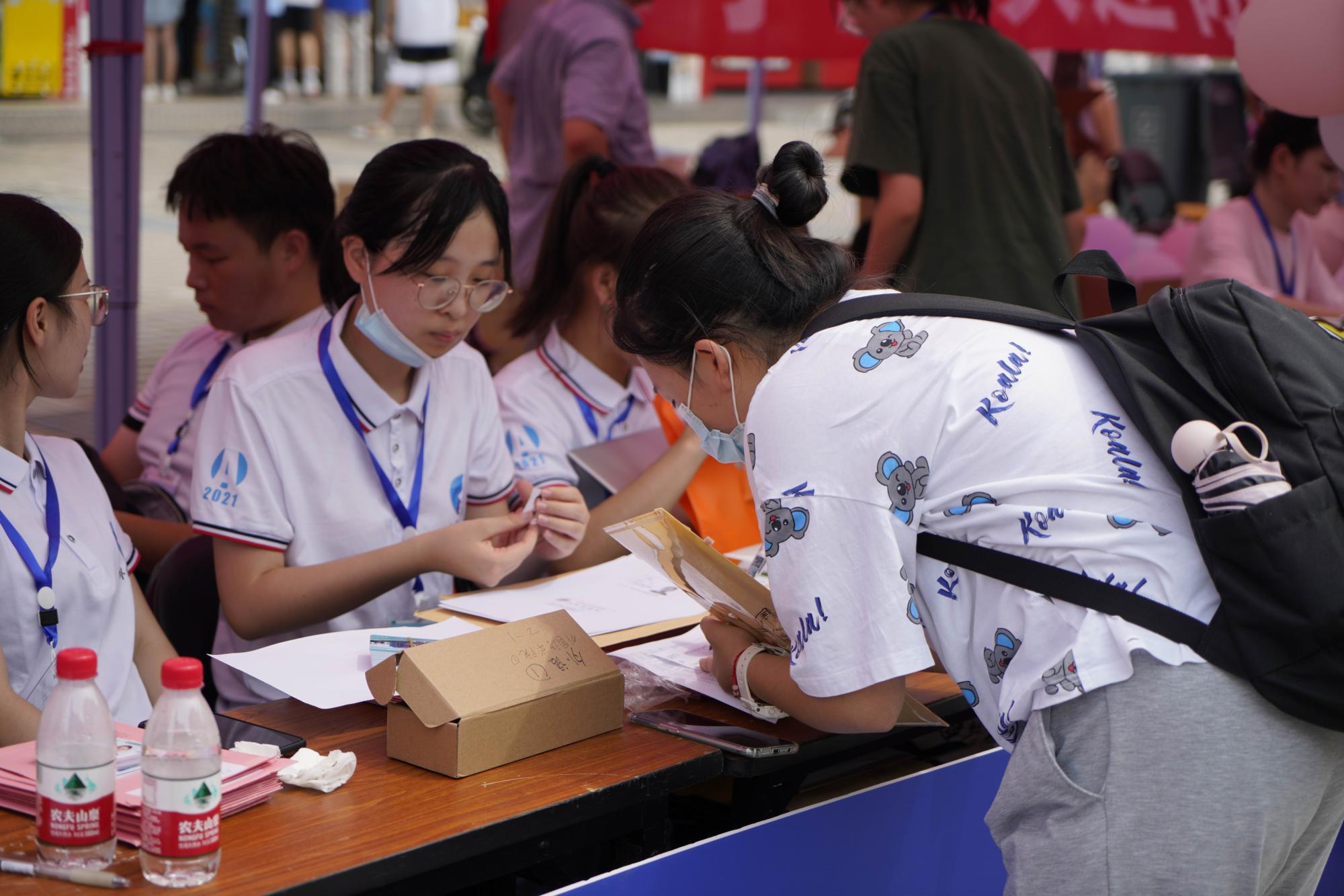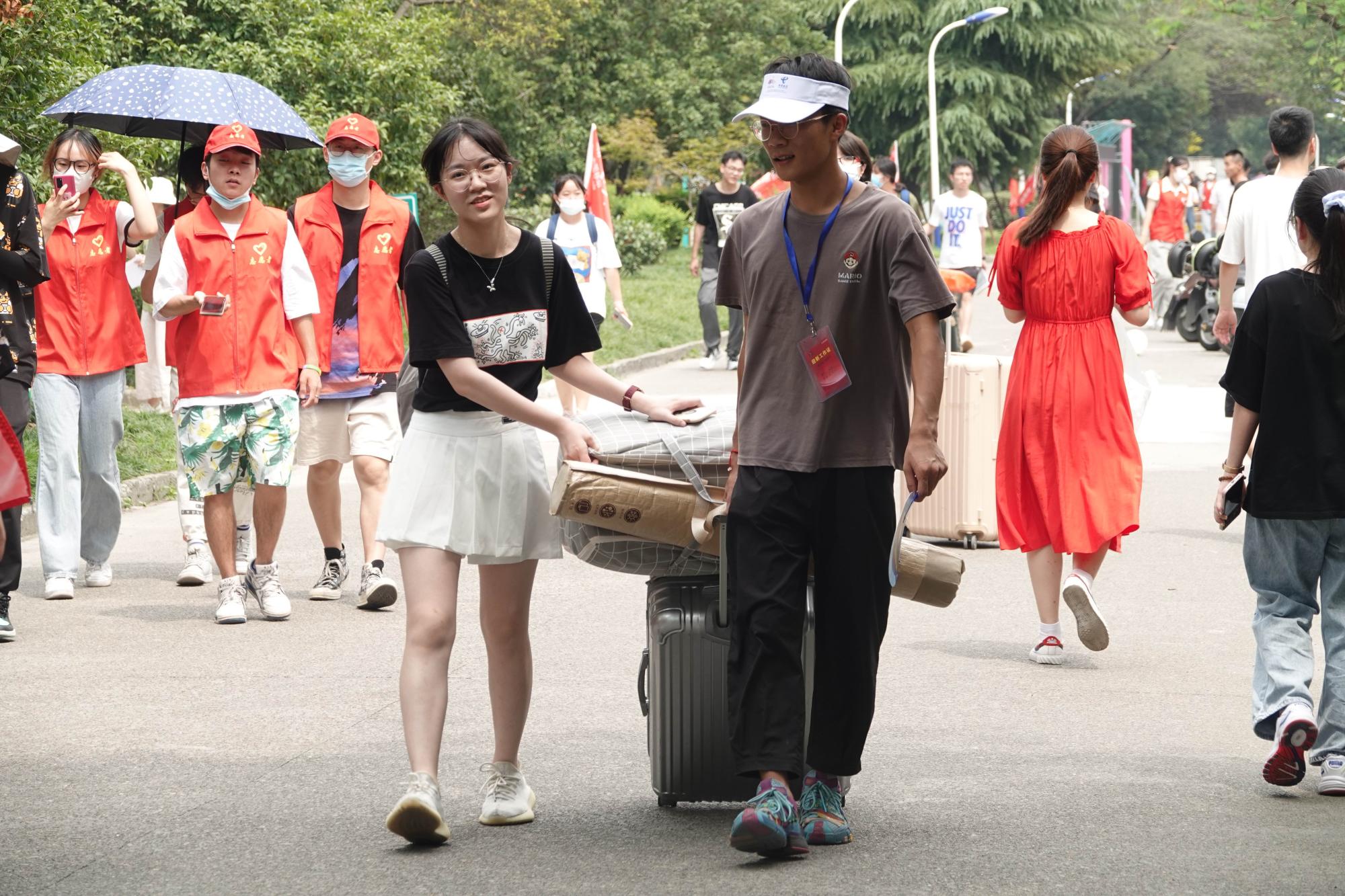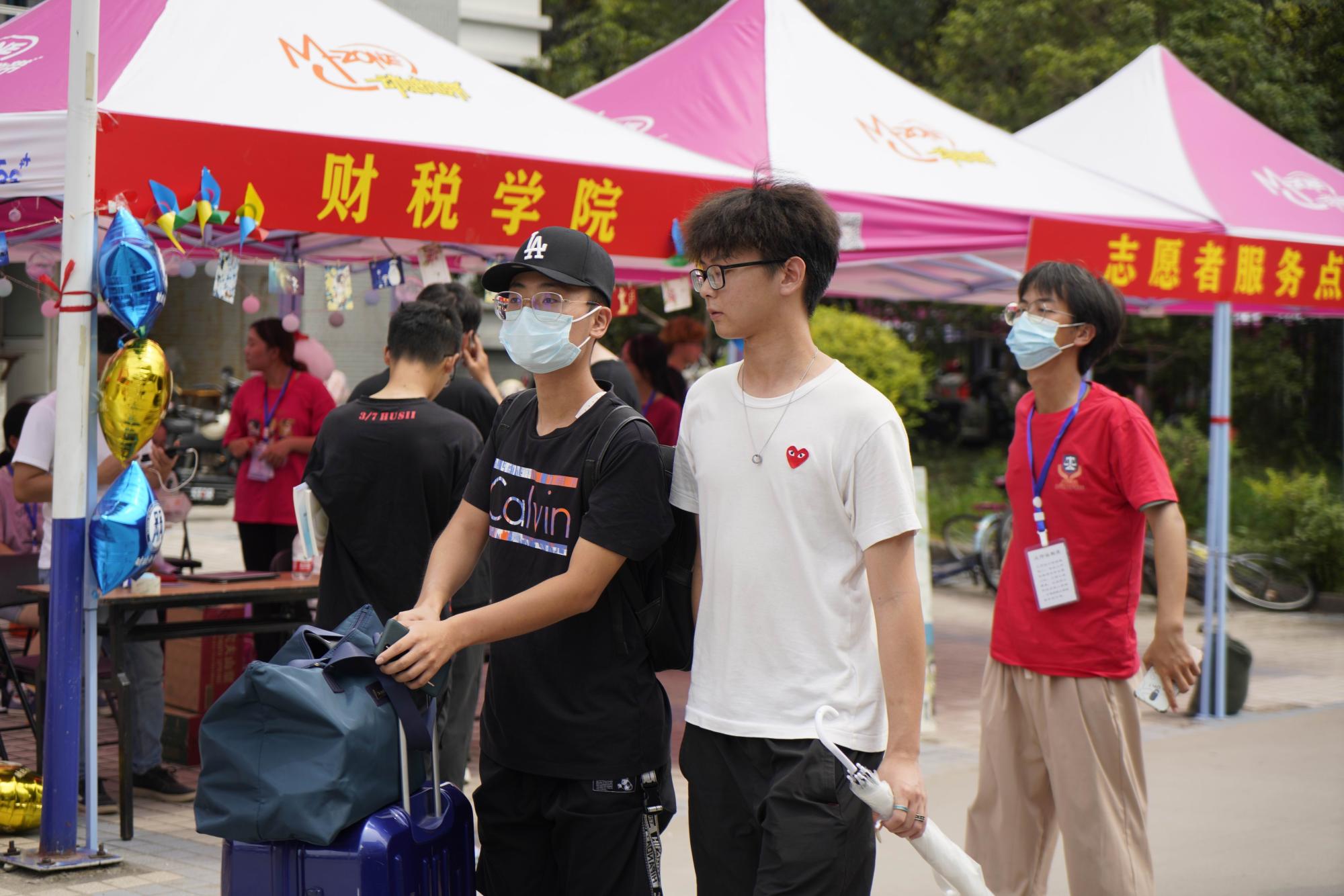 根据学校疫情防控要求,家长不能进入园区,学校安排多辆电动三轮车、小推车等,由志愿者、保安、后勤服务人员帮助新生把行李托运至公寓楼。各学院采取“一对一”的接待方式,让新生们刚一入校,就感受到了财大家的温暖。