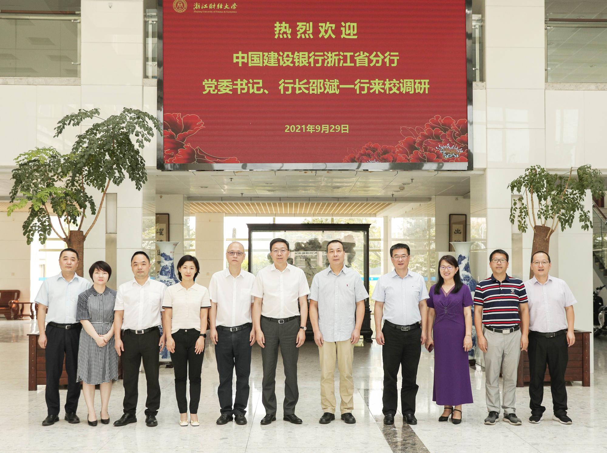 本网讯 9月29日,中国建设银行浙江省分行党委书记、行长邵斌来校交流。校党委书记李金昌热情接待了来访客人。副校长徐晓东陪同。