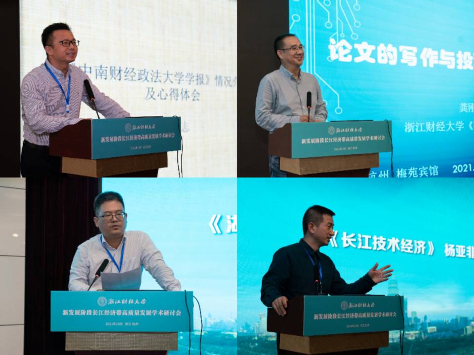 首都经济贸易大学杂志总社社长牛志伟、《长江流域资源与环境》副主编吕新华、《中南财经政法大学学报》编辑部主任胡浩志、《财经论丛》副主编龚刚敏、《湖北社会科学》副主编郁之行、《长江技术经济》社长杨亚非先后分享了论文撰写与期刊投稿的经验。