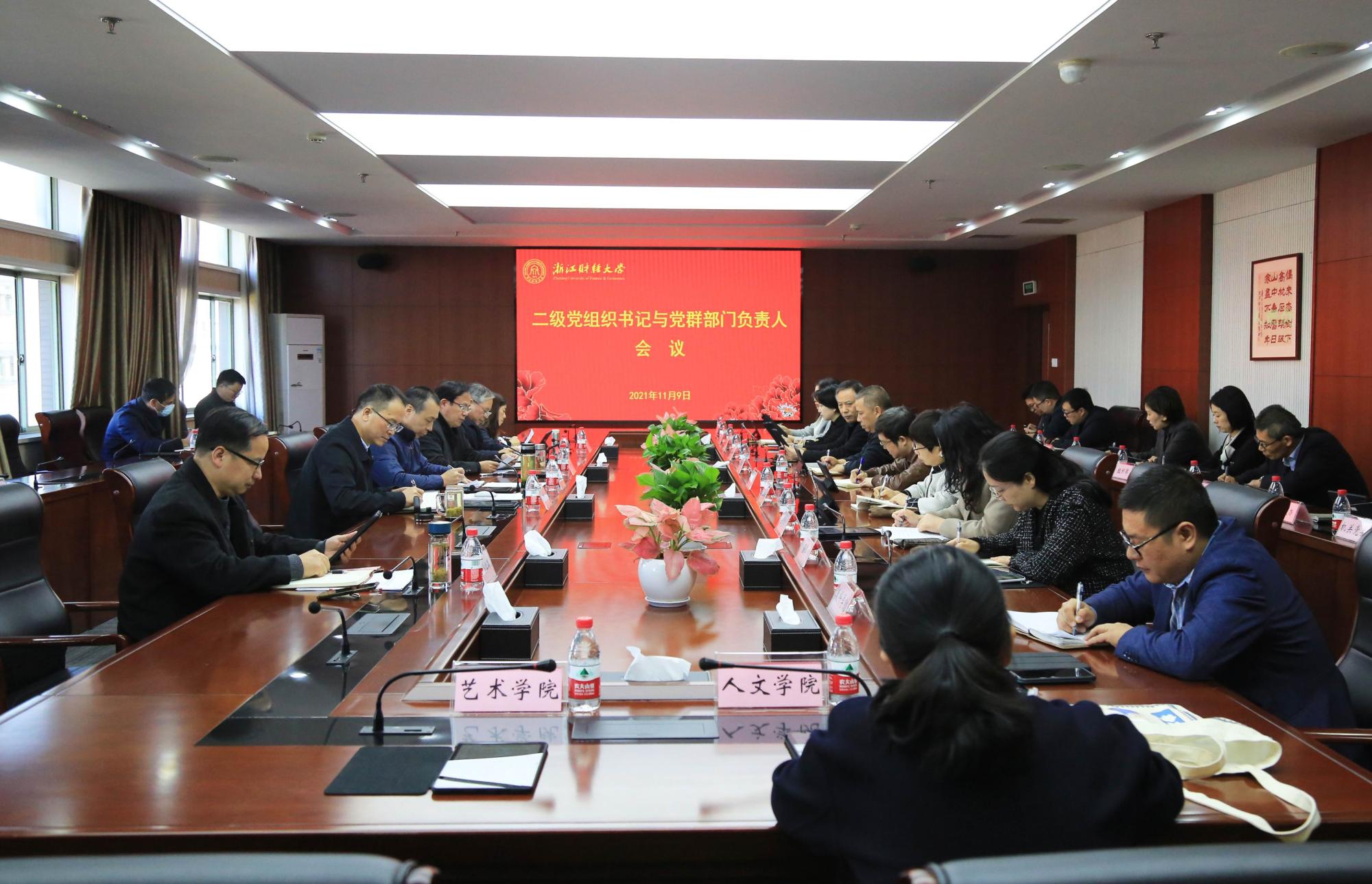 校党委副书记黄建新传达了全省基层党建工作会议和《中共浙江省委关于全面实施“红色根脉强基工程” 高水平打造新时代党建高地的意见》文件精神。校党委副书记余建森布置了学工、共青团、意识形态等重点工作。校纪委书记孙旭东布置了纪检监察重点工作。校党委委员、宣传部部长楼胆群就宣传思想文化重点工作进行了布置。组织部、统战部负责人布置了党建、干部、党委人才办、统战相关工作。