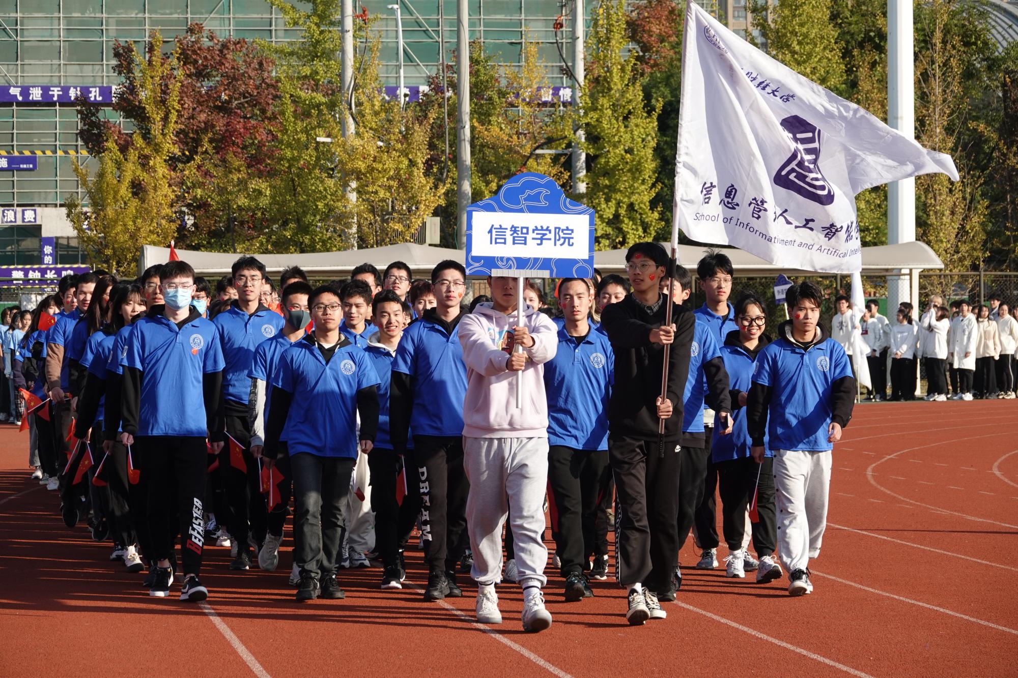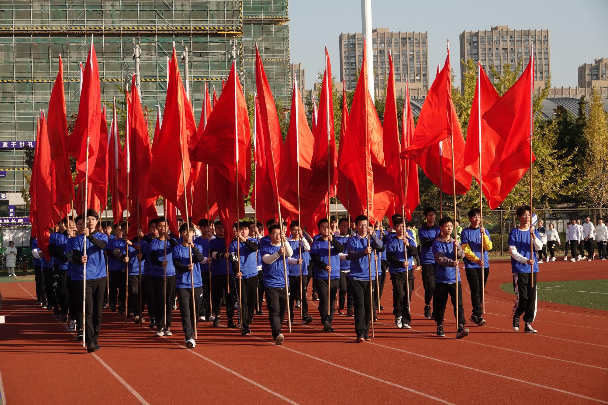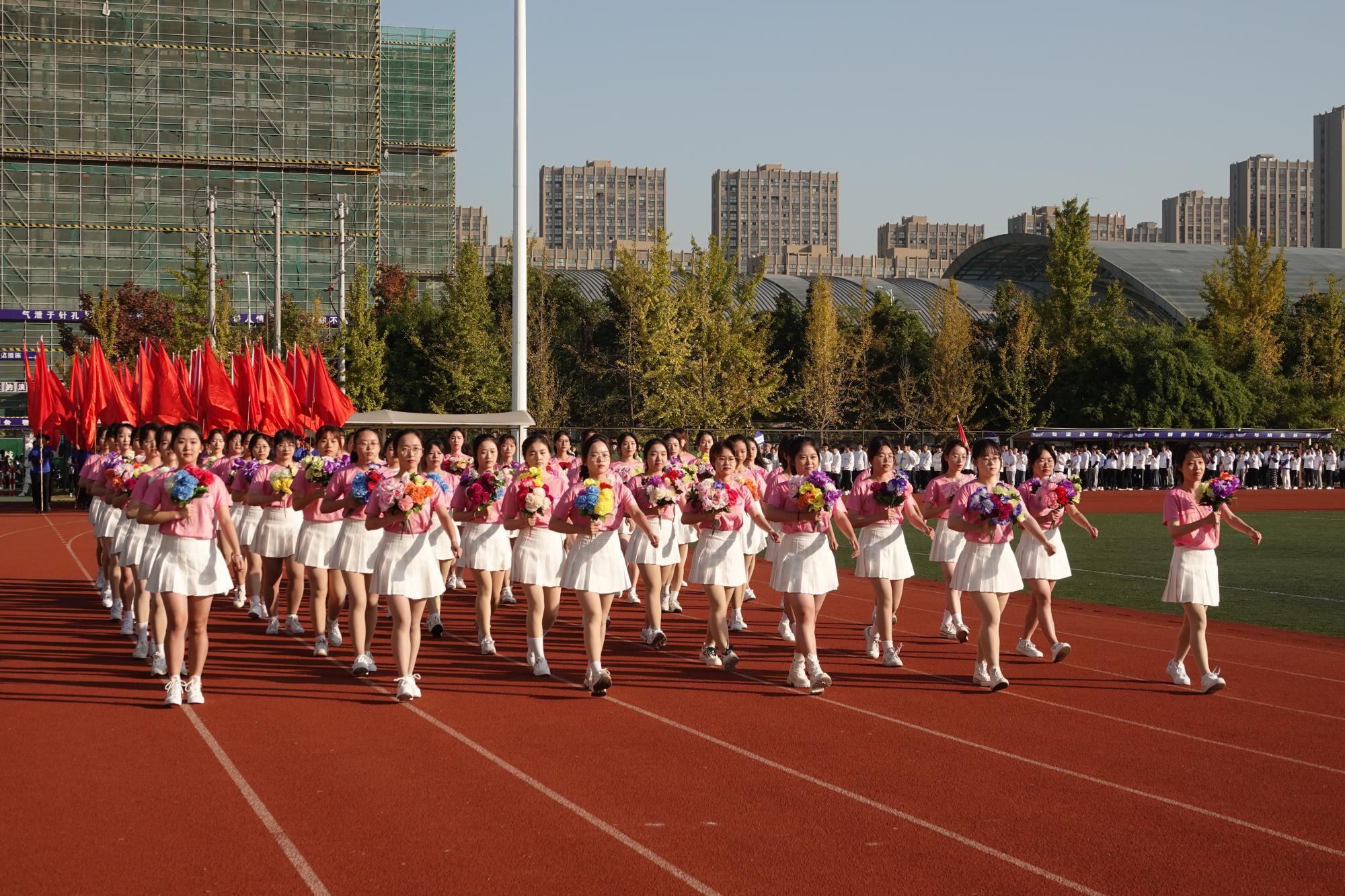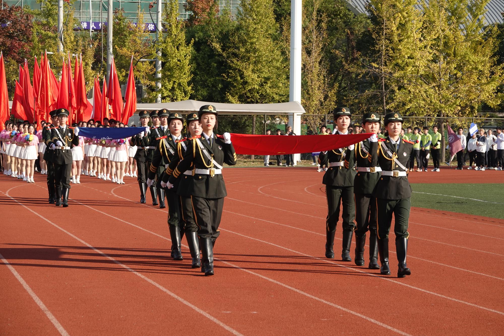 伴随着慷慨激昂的运动员进行曲,国旗护卫队、鲜花队、红旗队队员们先后入场。各学院学生方阵迈着整齐的步伐,昂首挺胸、精神抖擞地依次走过主席台。