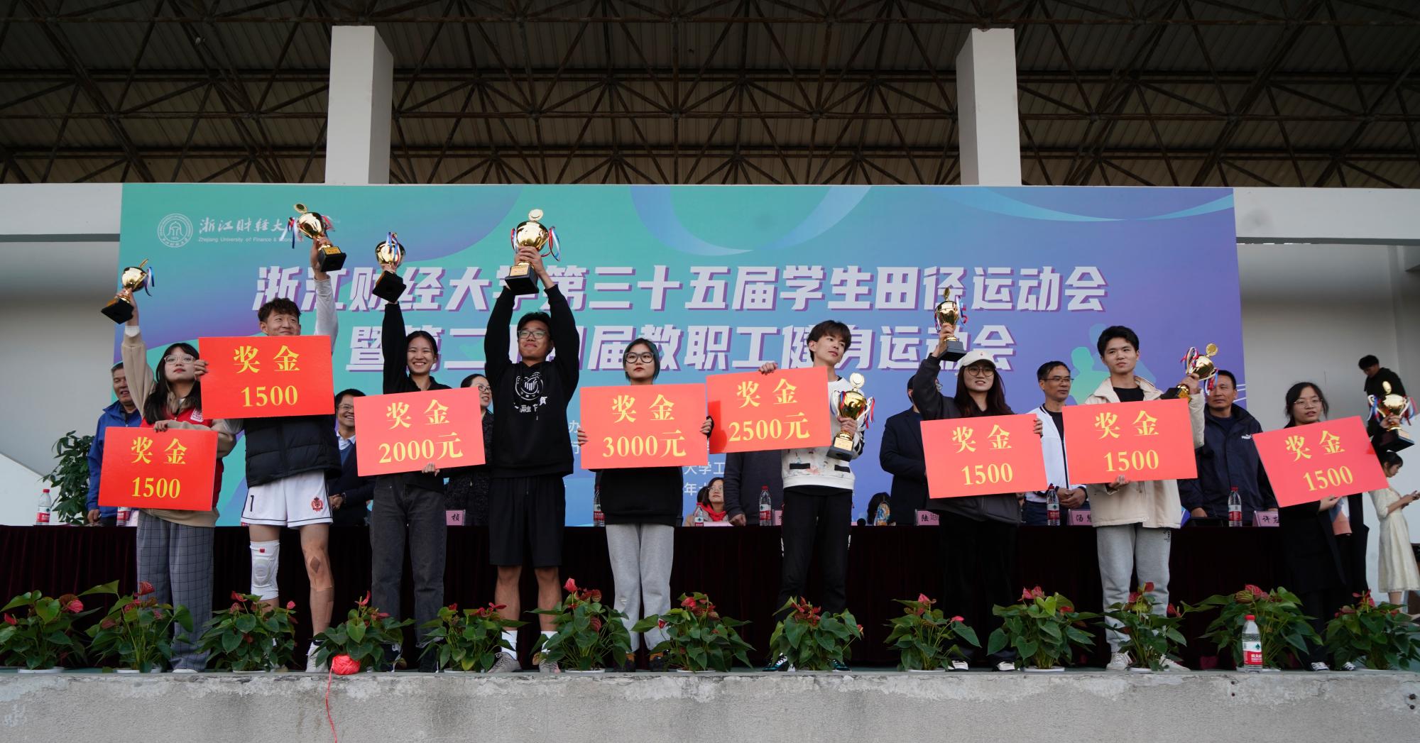 经过激烈角逐,后勤产业、机关三、数科学院分工会分列教职工健身运动会团体总分前三名。经济学院、财税学院、金融学院、经信国创、图书馆、信智学院分工会获得教职工健身运动会“体育道德风尚奖”。金融学院、会计学院、经济学院分列学生田径运动会团体总分前三名。会计学院、经济学院、外语学院(并列第三名)、数科学院(并列第三名)分获开幕式排舞比赛前三名。财税学院、继教学院、信智学院、经济学院、法学院获得学生田径运动会“体育道德风尚奖”。此外,经济学院范文健同学还打破男子200米、男子400米两项校纪录,经济学院马浩玮同学打破男子3000米校纪录,财税学院周沁伊同学、会计学院许硕果同学打破女子100米校纪录,公管学院韩箴同学打破男子五项全能校纪录。