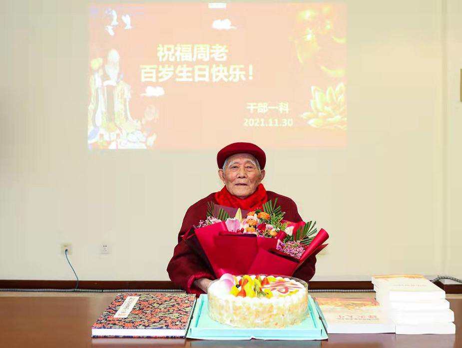 本网讯 11月30日,学校为首位百岁老人周方善老师祝寿。校党委书记李金昌、党委副书记黄建新向周方善老师表示亲切问候和美好祝福,并感谢他为学校建设发展所作的贡献。