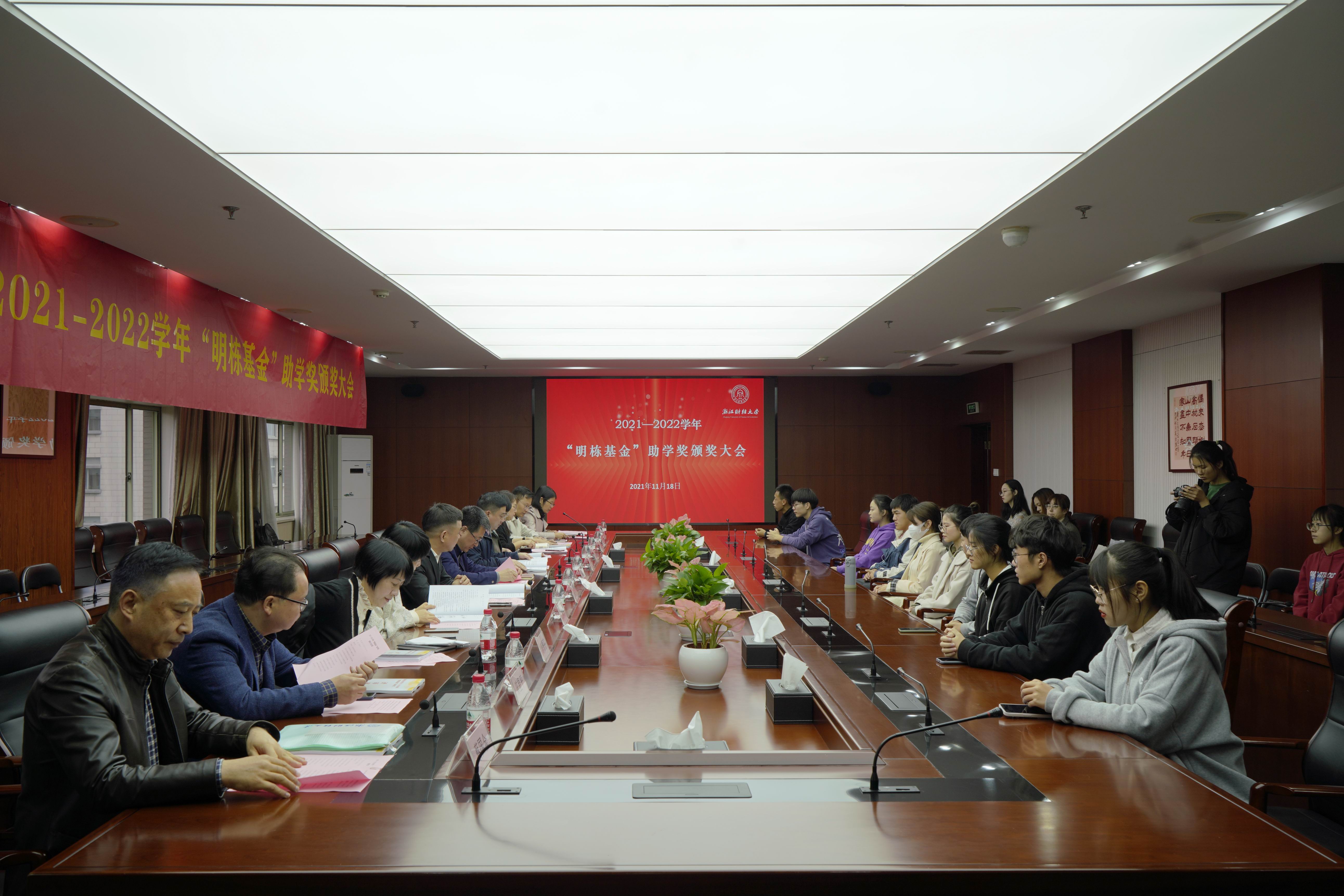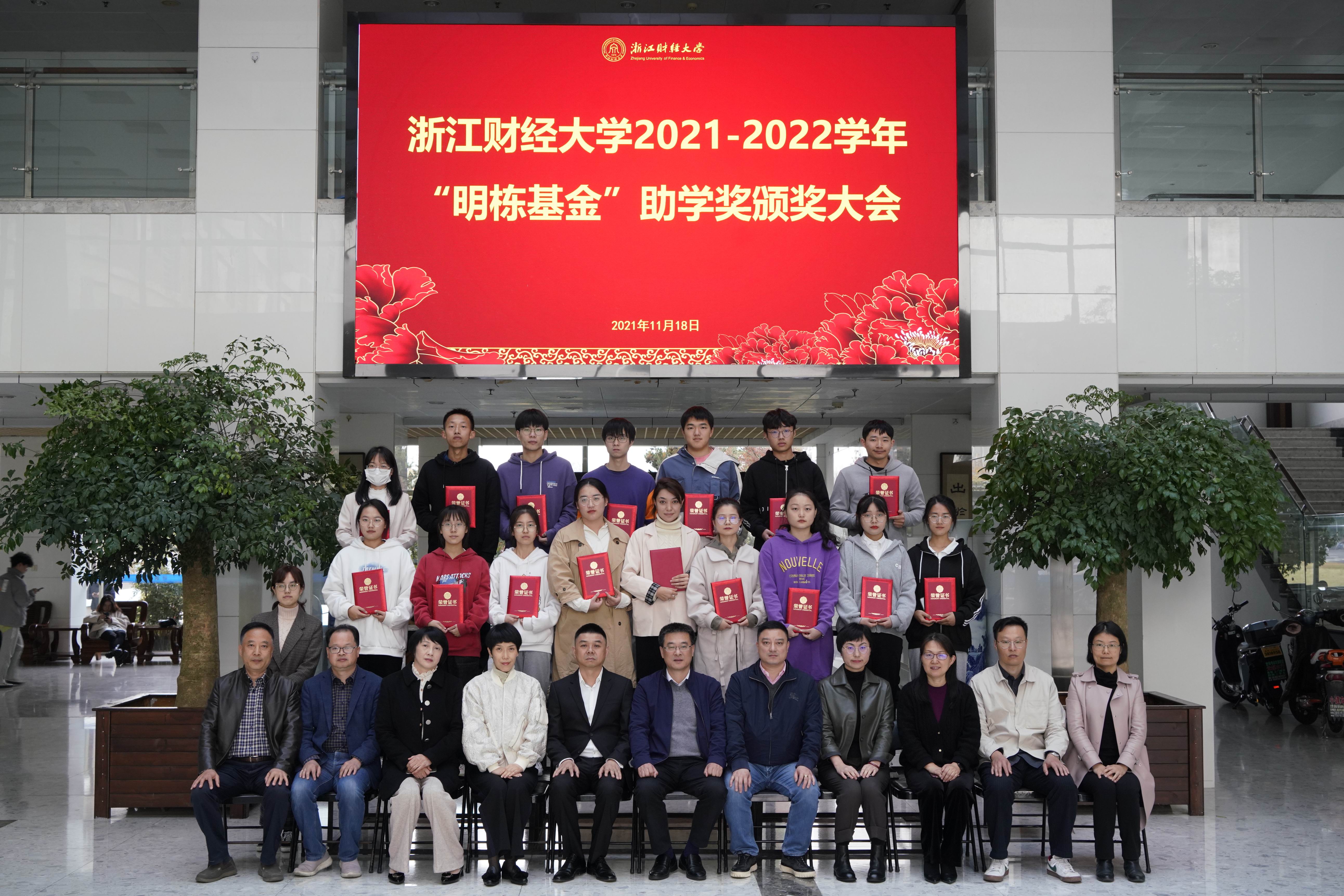 本网讯 近日,2021-2022学年“明栋基金”助学奖颁奖大会在我校下沙校区举行。副校长徐晓东、蓝山投资有限公司董事长王晓明、浙江盈阳资产管理股份有限公司总经理孔繁岗、蓝山投资有限公司总裁王柳琳以及学校相关职能部门、金融学院负责人和获奖学生等参加活动。
