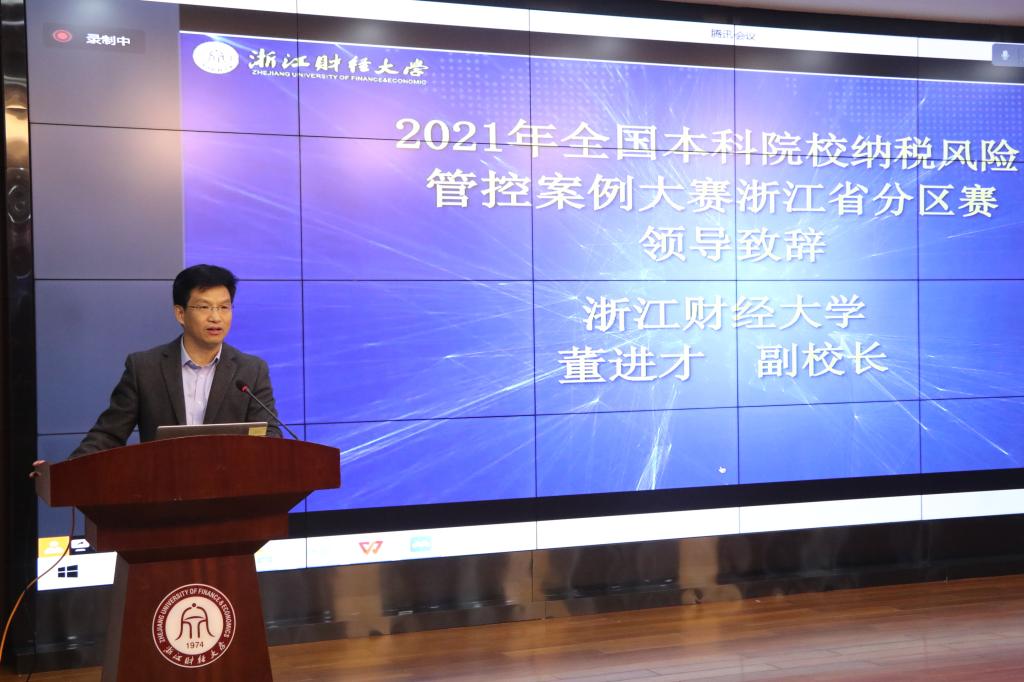 本网讯 近日,2021全国本科院校纳税风险管控案例大赛浙江省分区赛在我校下沙校区开赛。副校长董进才、省税务局副局长刘炳荣、省税协会长邢幼平及财税学院领导和参赛师生代表以线上线下相结合的方式出席开幕式。