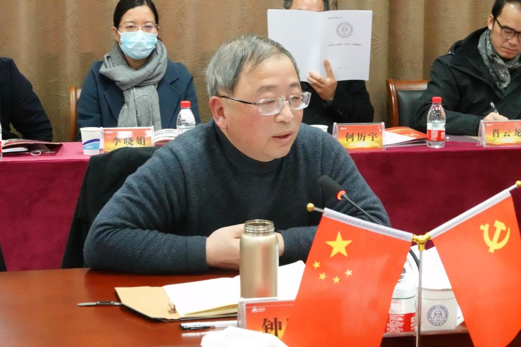 校长钟晓敏指出,马克思主义学院发展面临着良好的机遇,也遇到了一些挑战,希望马院要抓住大好形势,坚持系统观,加强前瞻性思考、全局性谋划、战略性布局。一是要做好顶层设计。要理清思路,明确路径,确保人才培养、专业建设、学科科研、师资队伍建设等各项工作整体推进。二是要对标找差。要解放思想,精准施策,排除干扰,静心梳理所取得的成绩与不足,争取在“十四五”期间取得事业发展新成绩。三是要坚持走融合之路。要想方设法进行人文学科的整合,搭建校内校外平台,形成马院建设的整体合力,争取在科学研究、学科建设、社会服务等方面做出更多探索。
