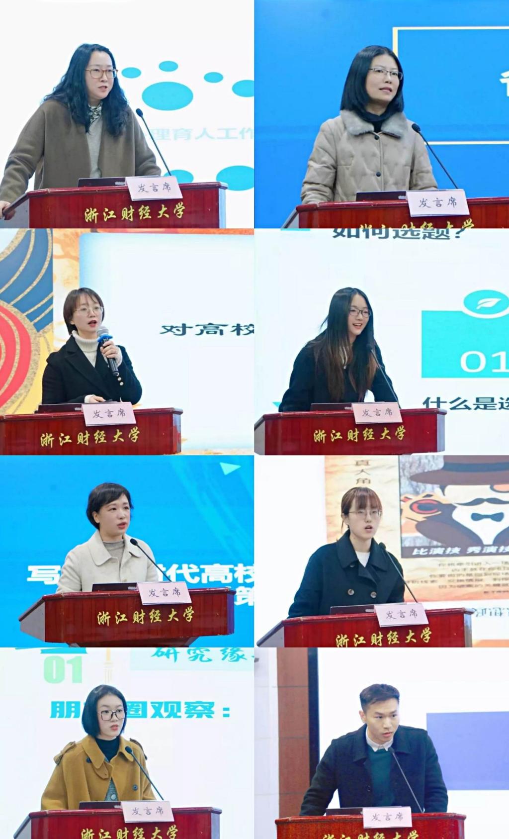 法学院党委书记朱丹、金融学院党委副书记谢敏、数科学院党委副书记何露霞、财税学院团委书记朱音、东方学院学工部副部长杨荧彬、金融学院辅导员沈晓云、工商学院辅导员顾晗可、人文学院辅导员万秋萌围绕本次研讨会主题,分享了“心理育人”“少数民族学生管理”“大学生宗教观”“家庭困难学生的就业策略”“辅导员队伍建设”“思政工作新手段”“课程思政”等方面的成果和体会。