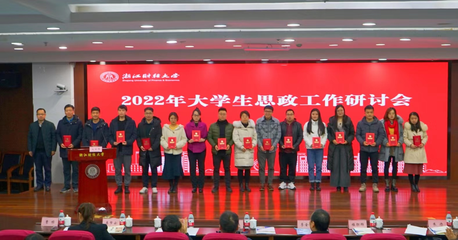 楼胆群为“大学生思政工作研讨会”论文征集三等奖获得者颁奖