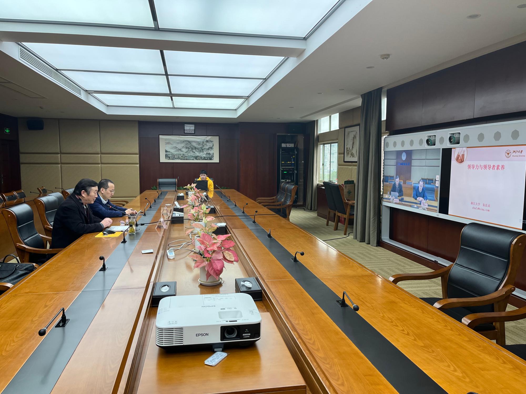 浙江大学人文学院朱法贞教授以《领导力与领导者素养》为题,从如何打造领导力、什么是领导和领导力、现代领导者应具备的素质以及如何决策和用人等四个方面开展授课。整场报告站位高、内容全、指导性强,结合了学校优秀年轻干部队伍建设实际,为年轻干部健康成长指明了努力方向和实现路径。