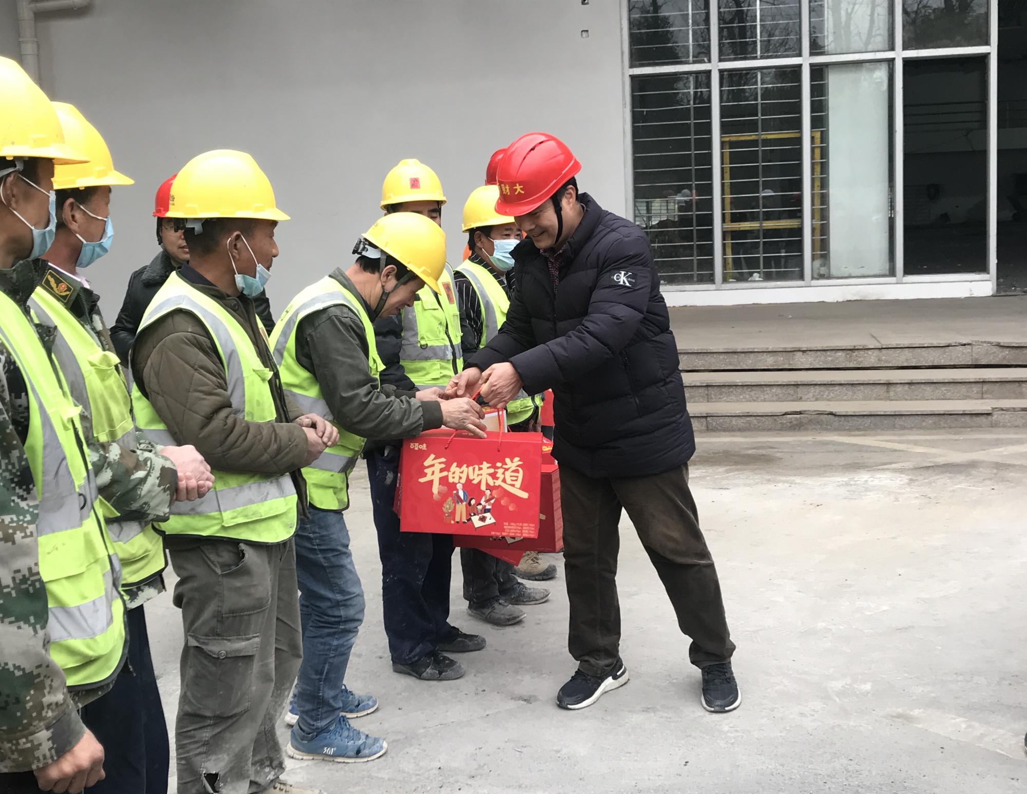 李金昌代表学校向此时此刻仍奋战在一线的施工人员表示感谢,感谢他们为确保学校建设工期所作出的努力。他还叮嘱工人们要做好疫情防控工作,确保个人人身财产安全,并希望他们能够在杭州度过一个平安祥和的春节。