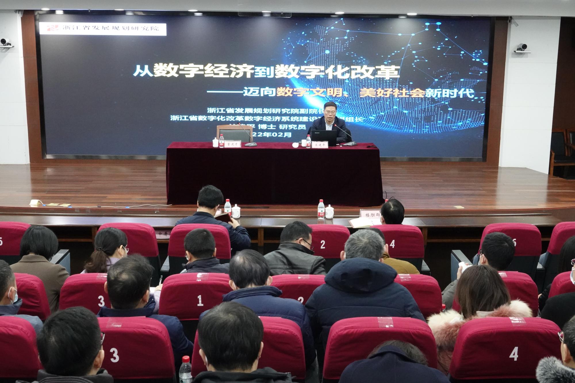 本网讯 2月20日,学校举办数字化改革专题培训,邀请省发展规划研究院副院长兰建平研究员等专家作辅导报告。校领导班子成员董进才、申屠莉、楼胆群及全体中层干部参加培训。培训会由副校长董进才主持。