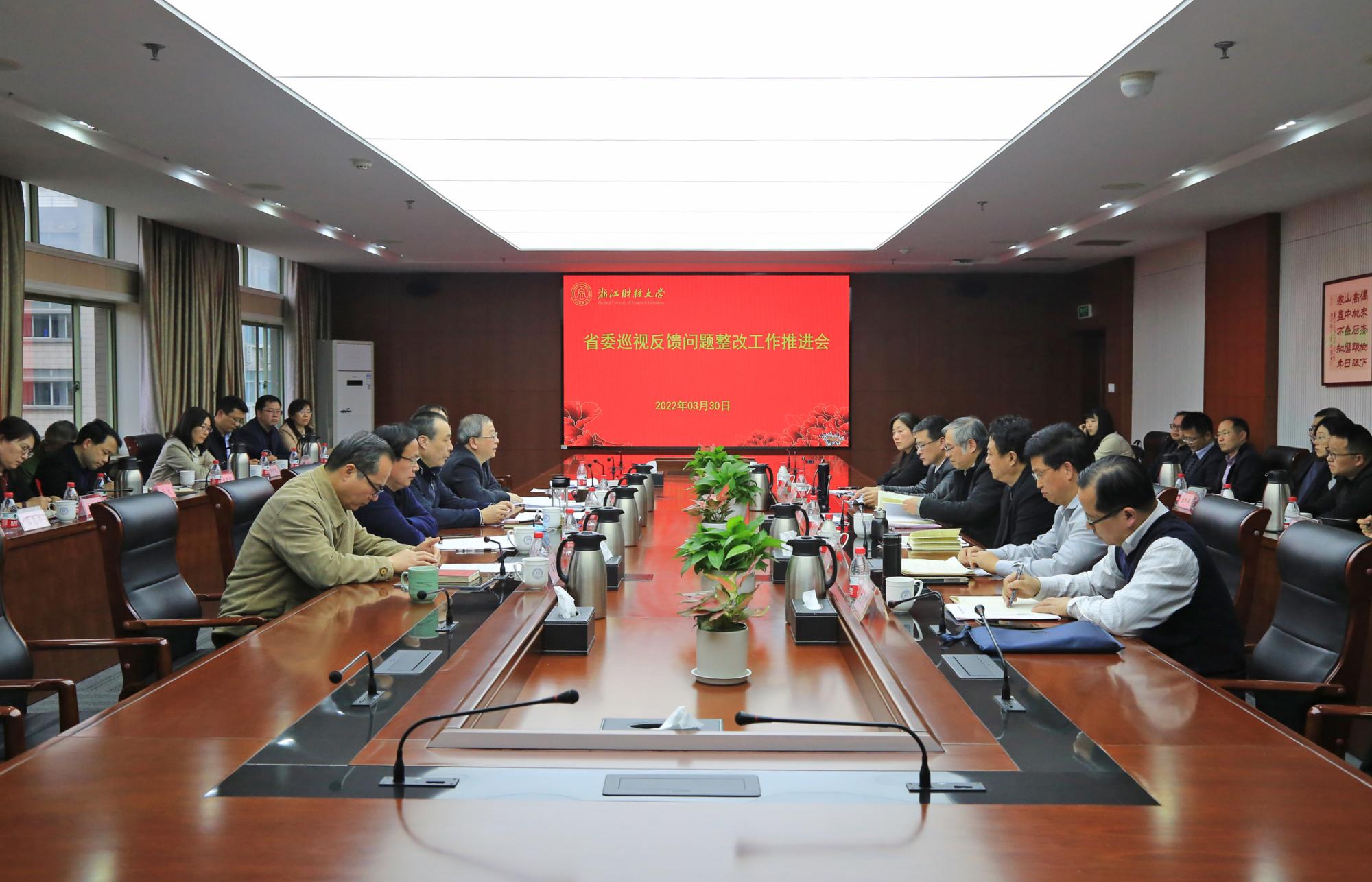 校党委副书记、校长钟晓敏在讲话中指出,针对巡视问题整改,要进一步提高政治站位,强化责任担当,坚持目标导向,增强系统观念,狠抓落实落地。要聚焦服务国家和浙江省重大战略、教育评价改革等重点难点问题,结合学校“十四五”发展规划和新一轮综合改革实施,以促进高质量人才培养和师生幸福指数提升为目标,统筹推进巡视整改工作,不断推动学校高质量发展。要保持工作定力,做到整改标准不降、尺度不松、力度不减,实现存量问题应清尽清、应改尽改,推动巡视反馈意见和整改要求落地生根。
