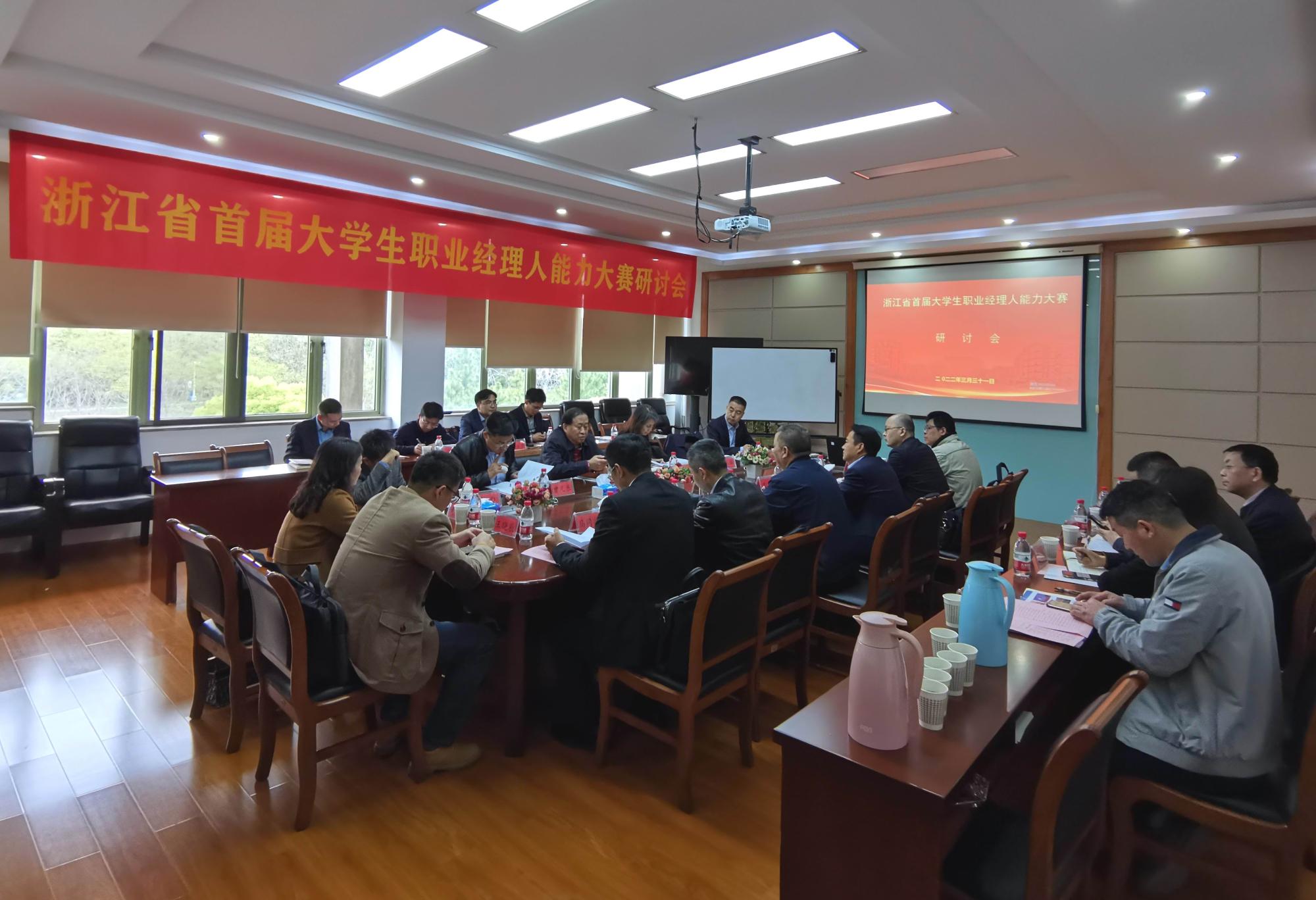 本网讯 3月31日,浙江省首届大学生职业经理人能力大赛研讨会在工商管理学院召开。来自省内高等院校、行业协会的专家学者齐聚一堂,围绕“服务地方经济 推动数字转型 践行绿色管理 共创人才培育”这一主题展开研讨。