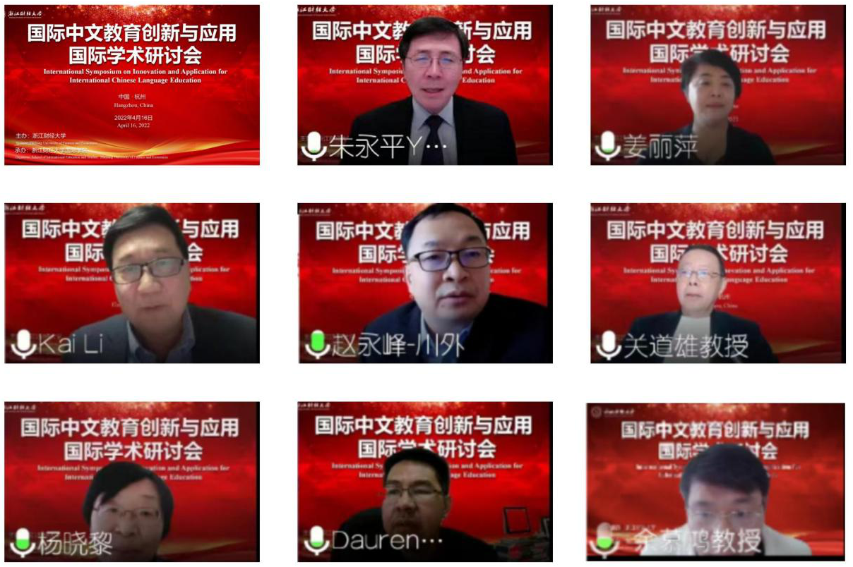 本网讯 4月16日,国际中文教育创新与应用国际学术研讨会在我校下沙校区举行。来自美国、哈萨克斯坦、韩国、澳门等境内外高校的120多位专家学者以线上线下相结合的方式参加论坛。副校长李占荣教授出席开幕式并致辞,美国中文教师学会会长朱永平教授通过视频方式致辞。