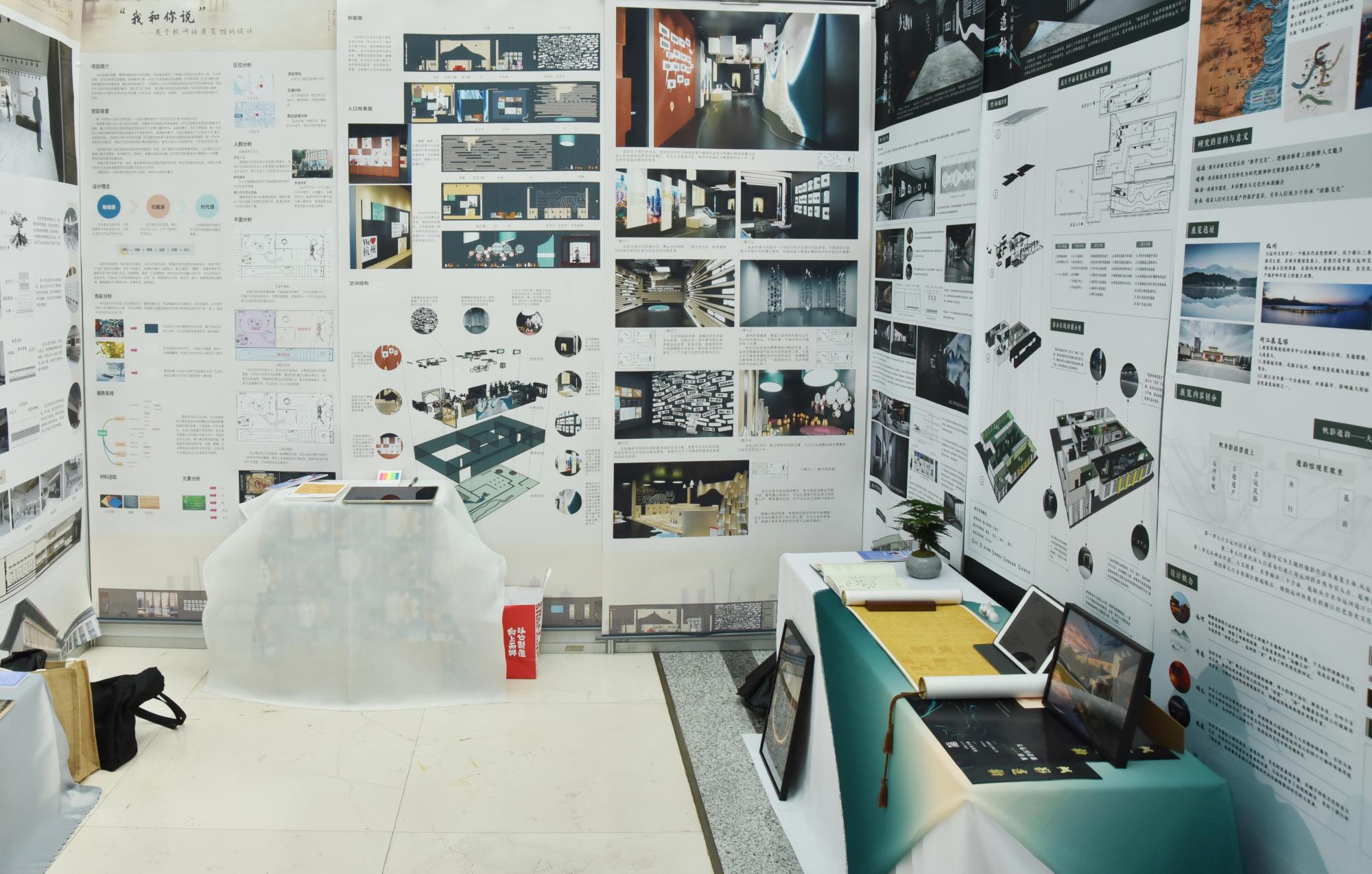 本次展览以“从浙里出发”为主题,共展出视觉传达设计、环境设计、摄影、美术学4个专业160余组作品,内容涵盖服务于浙江城乡经济社会发展的设计方案、针对浙江地域文化的影像呈现、基于传统艺术语言的笔墨深耕、面向社会美育的策展实验等方面。美术和设计的多样化表达,不仅展现出毕业生们孜孜以求的专业探索,更是莘莘学子艺术探寻与时代精神同频共振的生动体现。
