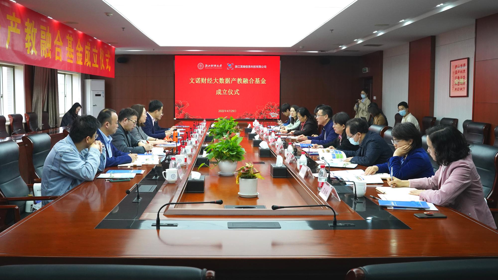 本网讯 4月29日,文诺财经大数据产教融合基金成立仪式在我校下沙校区举行。浙江淏瀚信息科技有限公司向买球体育官方网站-中国社会科学院大学浙江研究院捐赠200万元,用于支持学校开展学科交叉人才培养和现代税务师学院建设。校党委委员、副校长徐晓东,浙江淏瀚信息科技有限公司总经理毛亚萍出席成立仪式。