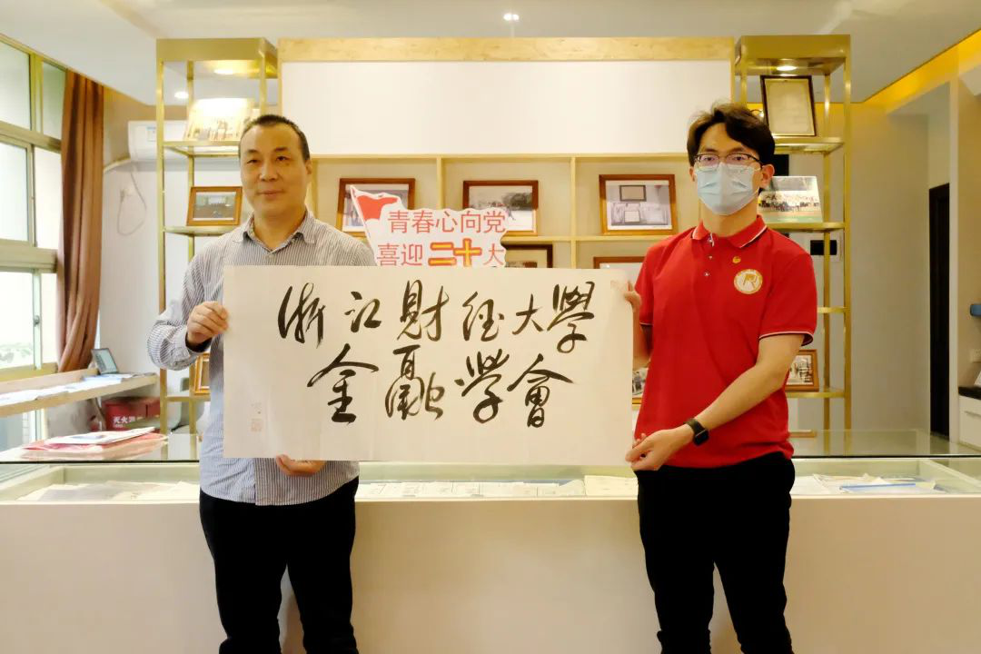 活动最后,李金昌与金融学会学生代表互赠了礼物。李金昌一行还参观了金融学会会史馆。