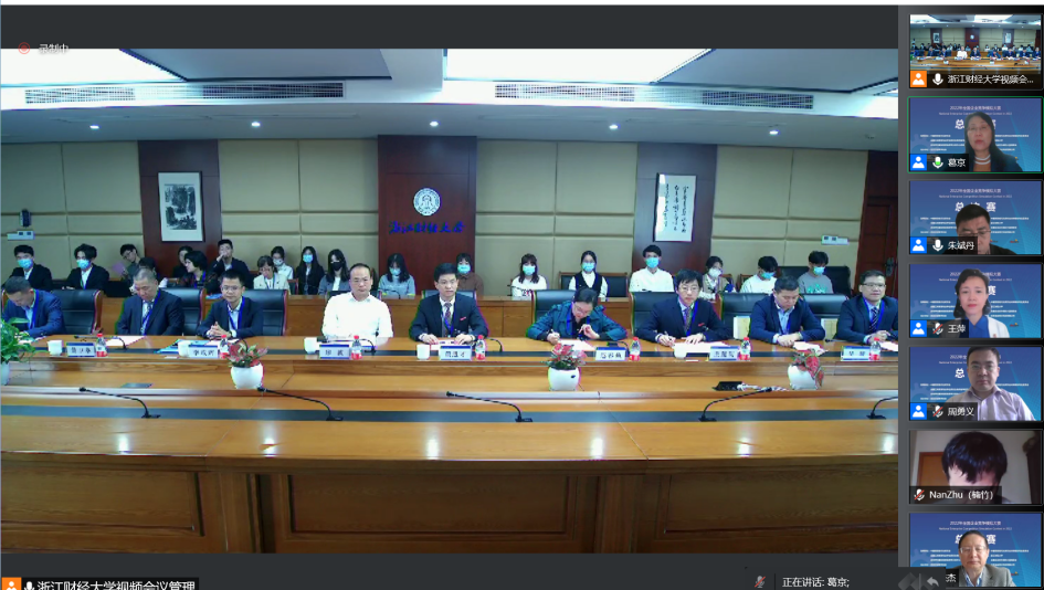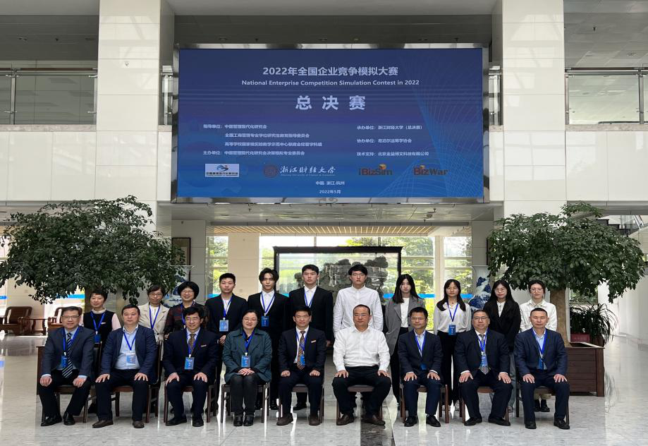 本网讯 近日,由中国管理现代化研究会决策模拟专业委员会主办,我校承办的2022年全国企业竞争模拟大赛总决赛在我校下沙校区举行。校党委委员、副校长董进才,省教育厅高教处副处长廖波,中国高教学会事业发展部主任吴英策,教育部高等学校工商管理类专业教指委秘书长葛京,全国MBA教指委秘书处办公室主任王萍,中国管理现代化研究会联职理事长石勇,高等学校国家级实验教学示范中心联席会副秘书长周勇义等出席大赛开幕式。本次大赛总决赛采取线上线下相结合方式进行。开幕式线下主会场设在我校。