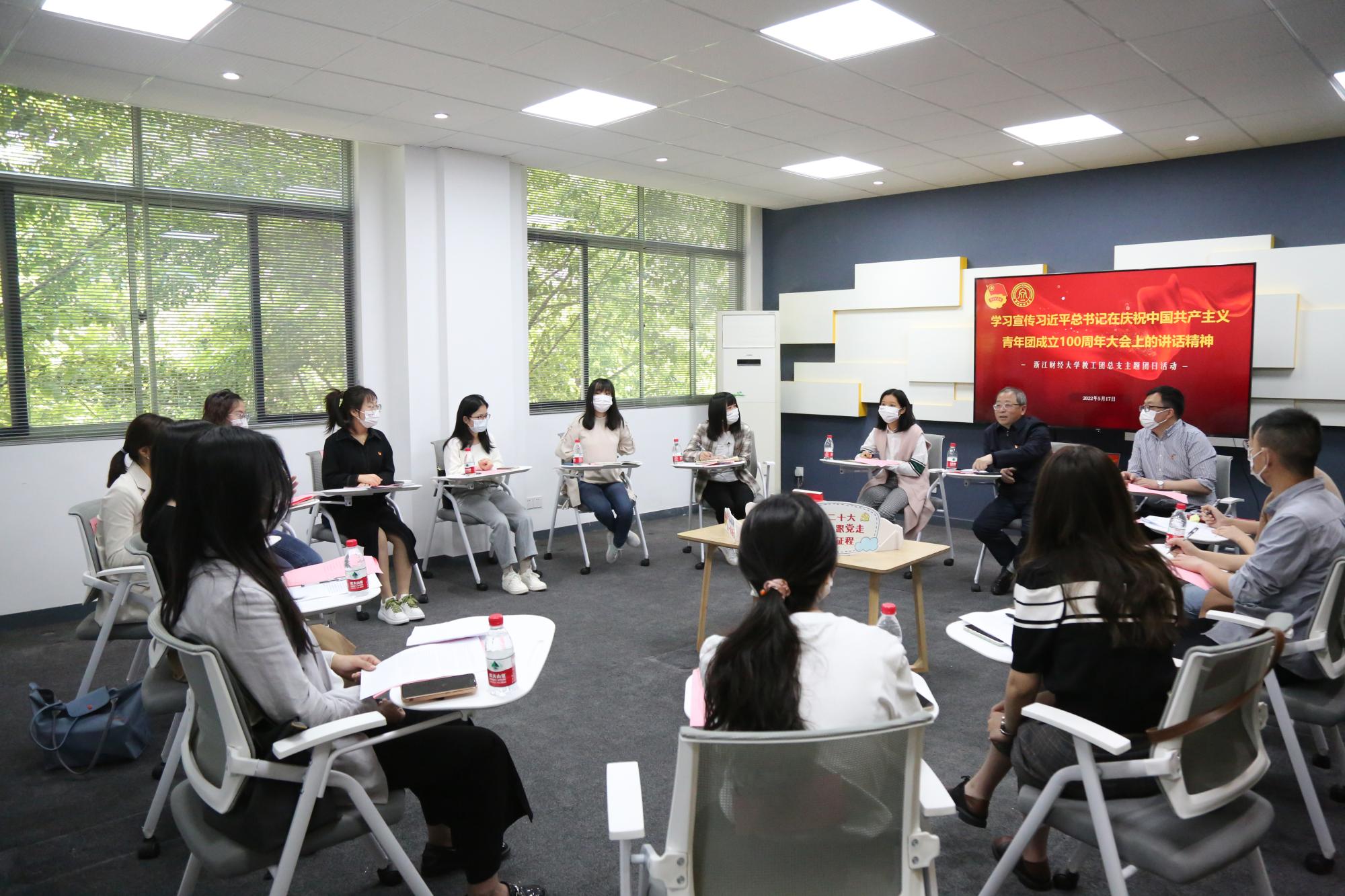 校领导班子成员黄建新、余建森、申屠莉、楼胆群分别参加生活园区团小组、风华学校青马班团支部、东方学院军事训练教导队、国旗护卫队临时团支部、管制经济学研究生班主题团日活动,勉励青年师生树立远大理想,积极投身浙江高质量发展建设共同富裕示范区的火热实践,以饱满的精神、务实的作风、优异的成绩迎接党的二十大胜利召开。